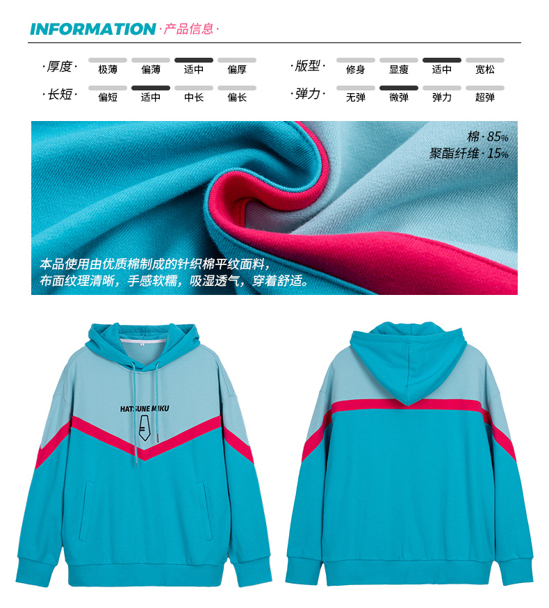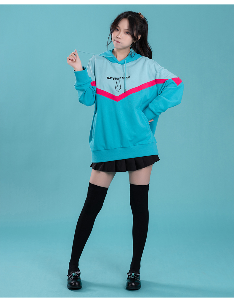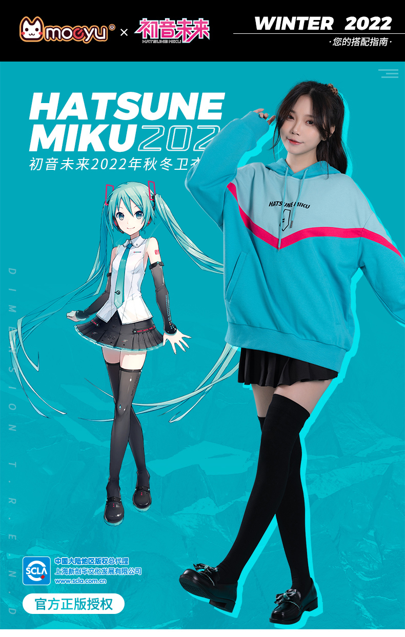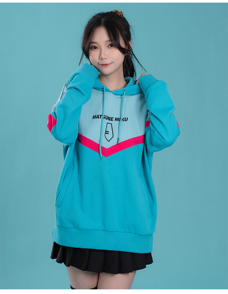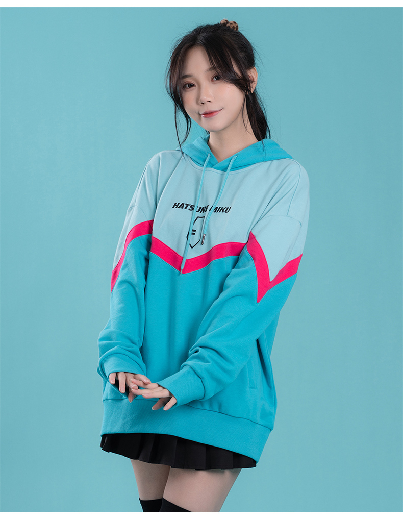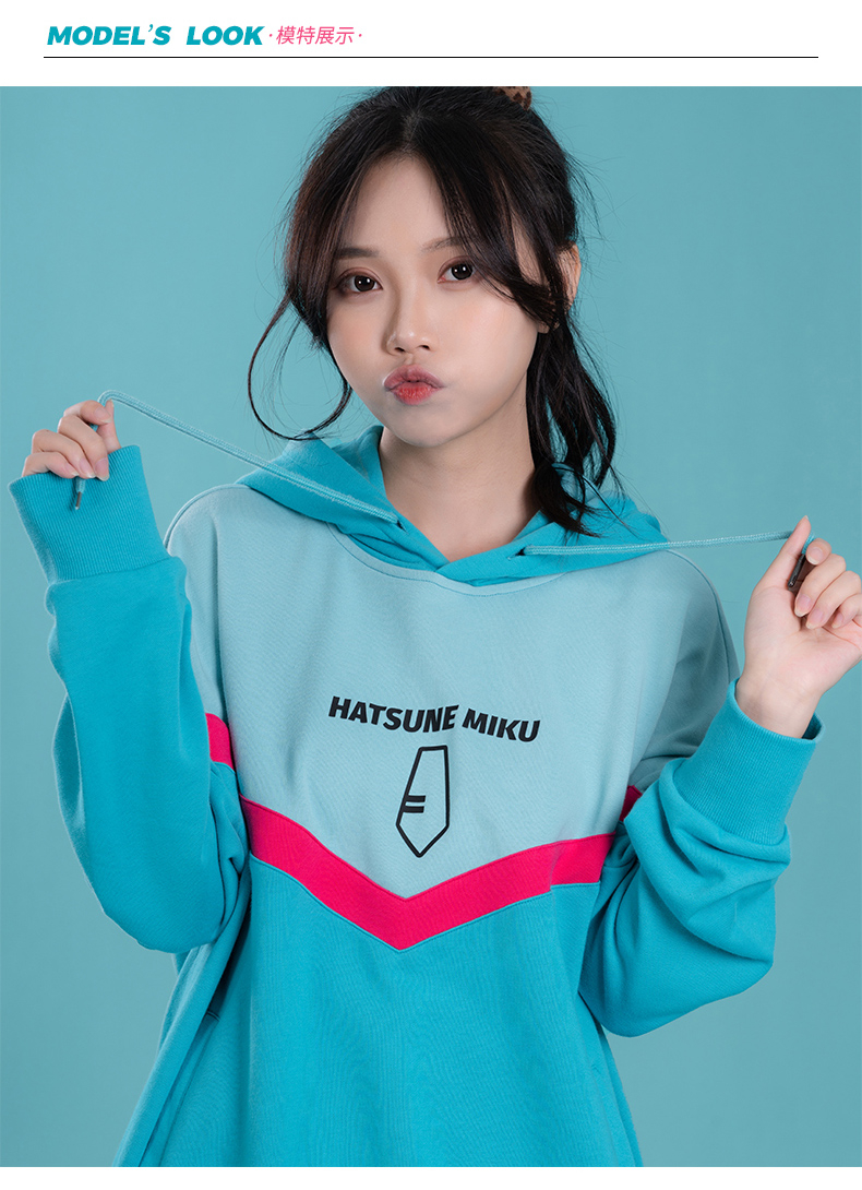 moeyu 初音未來 2022年 秋冬 新款 連帽衛衣 miku 印花 拼色 長袖連帽衫
