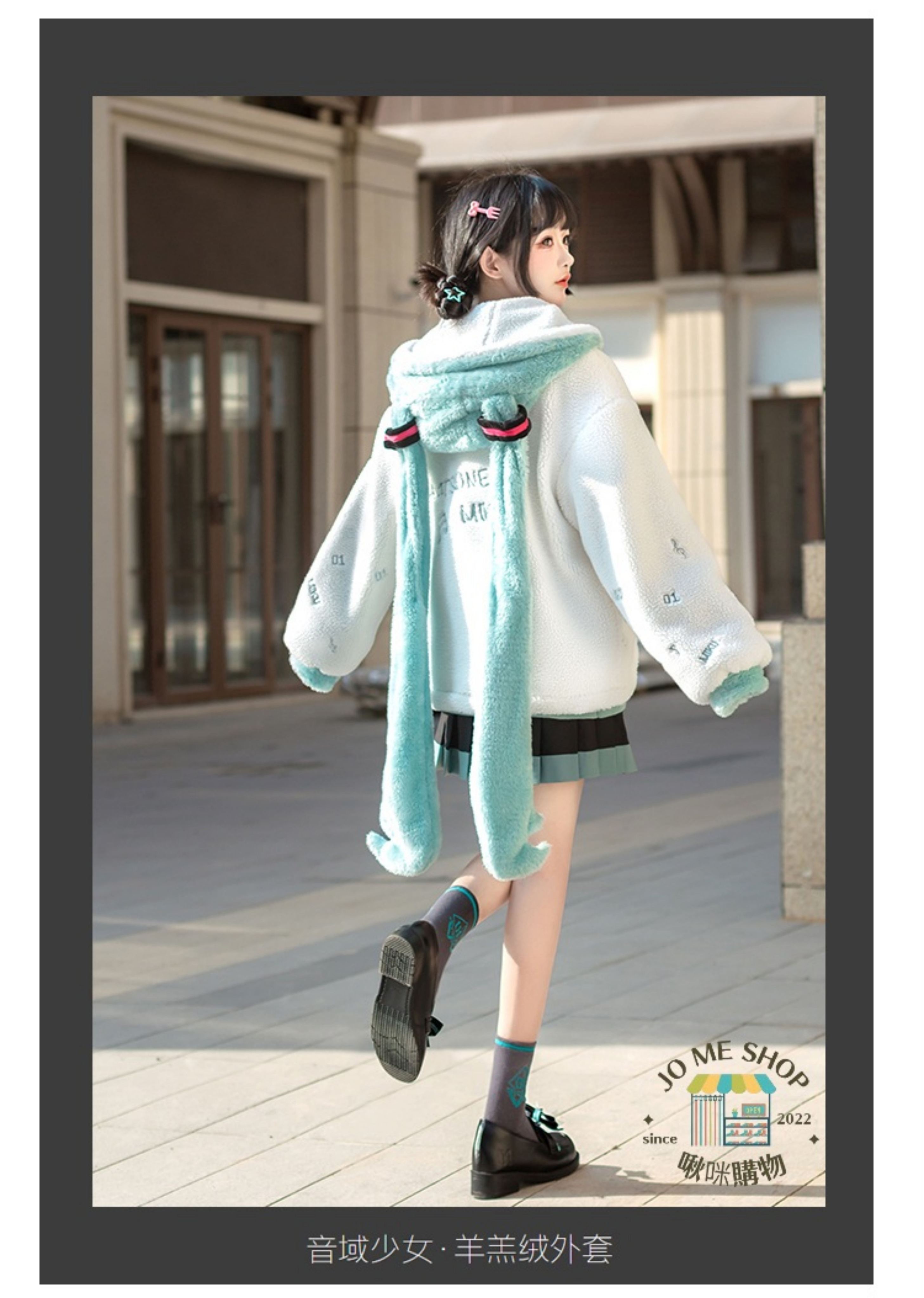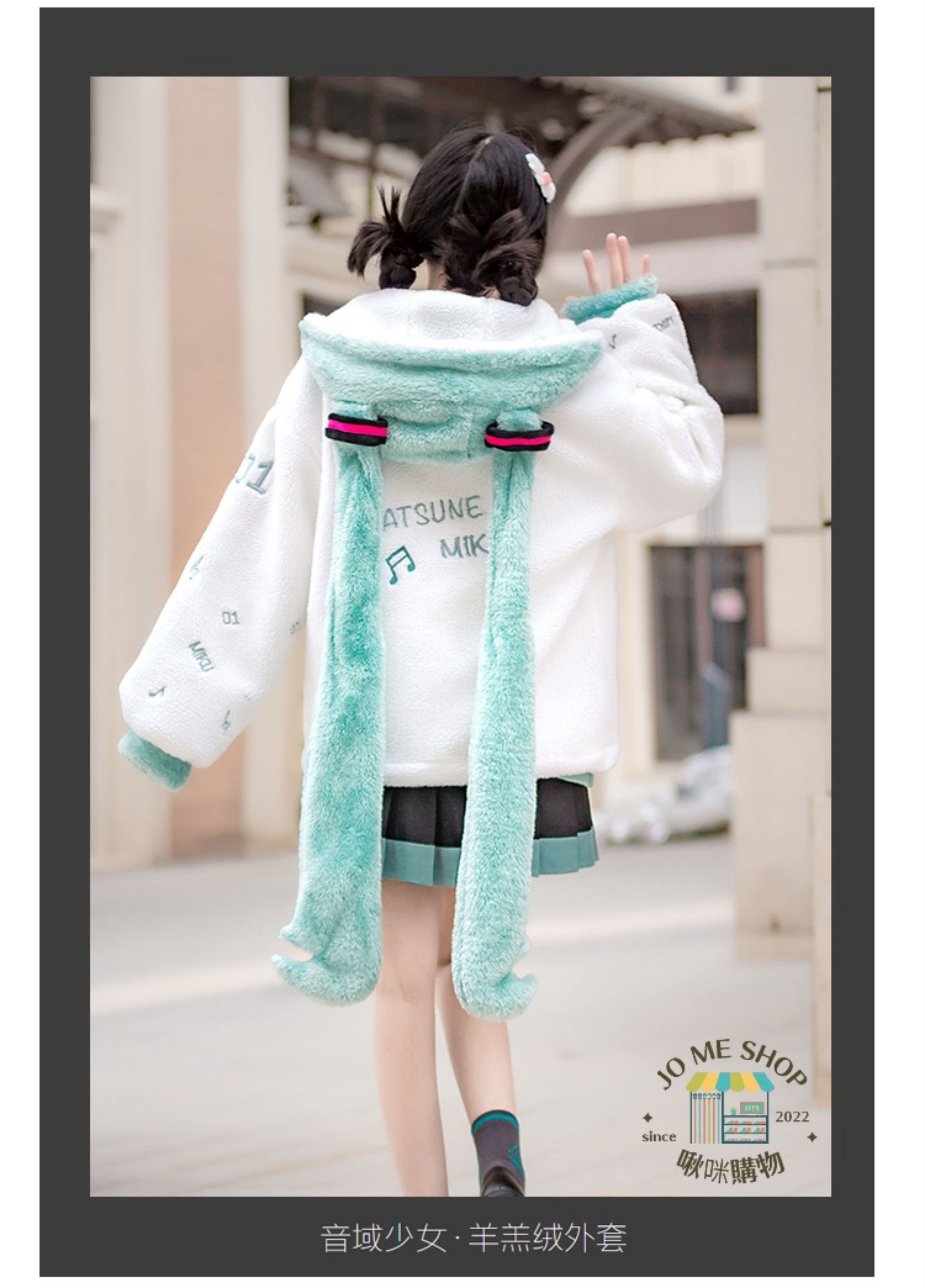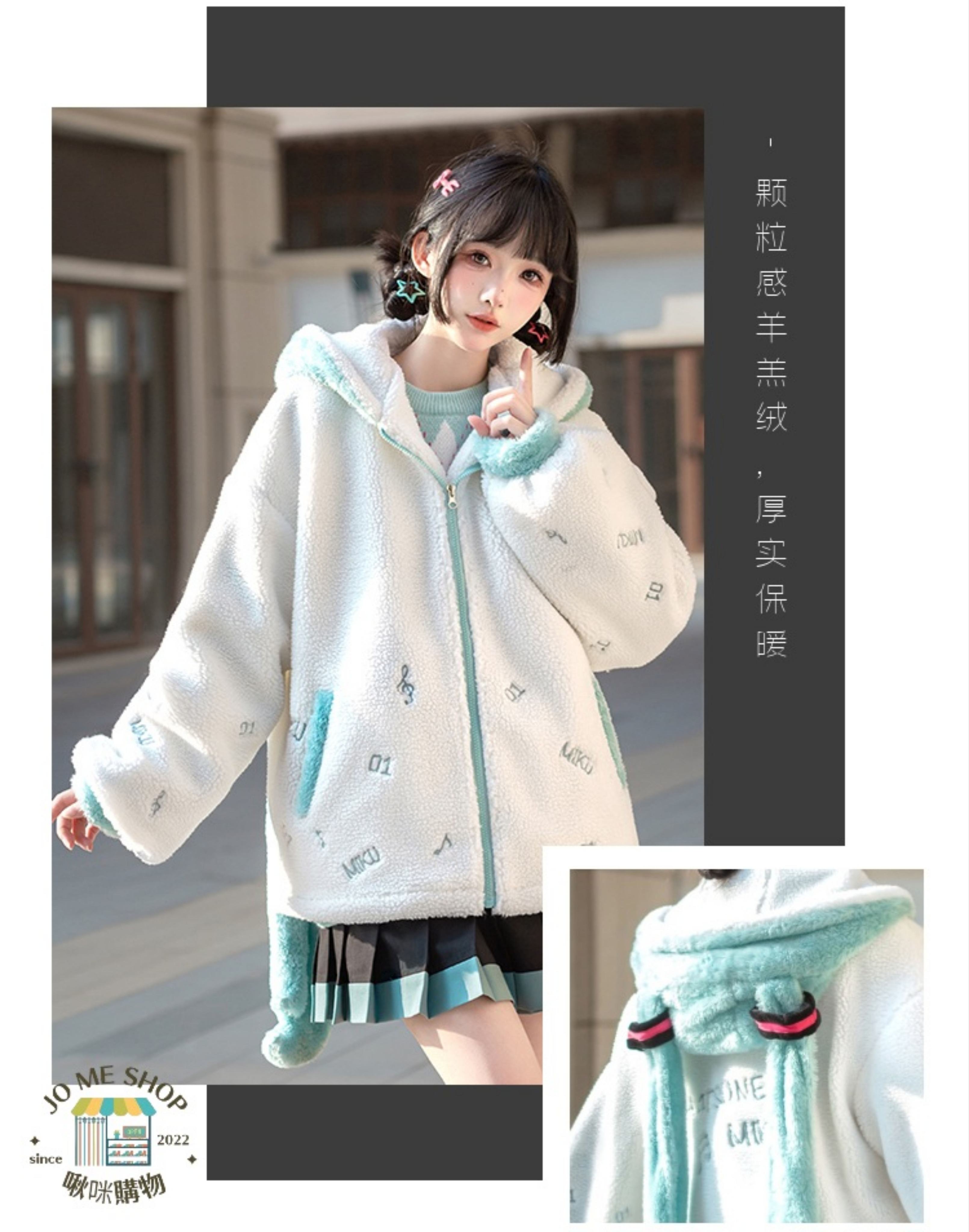 這款羊羔絨外套的連帽設計 整個還原初音的長耳造型