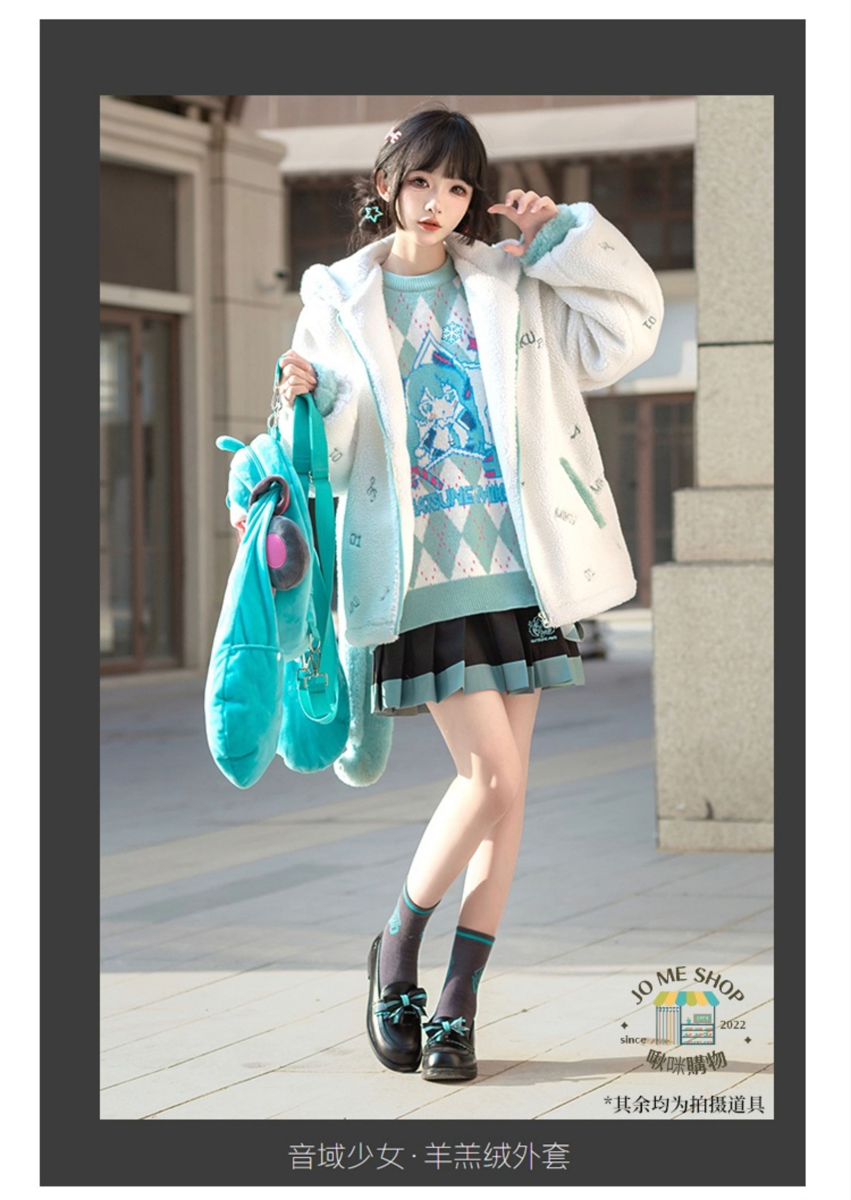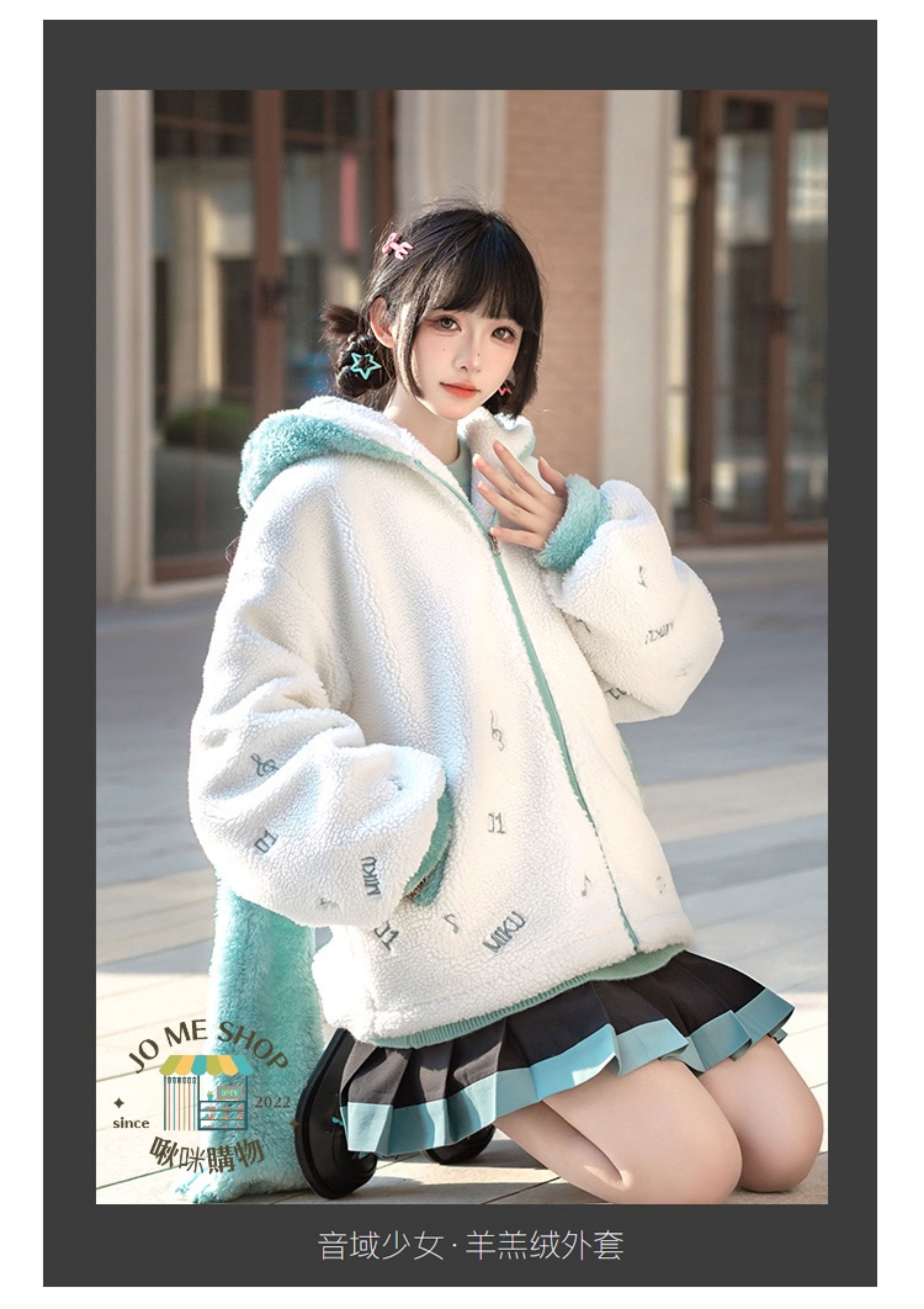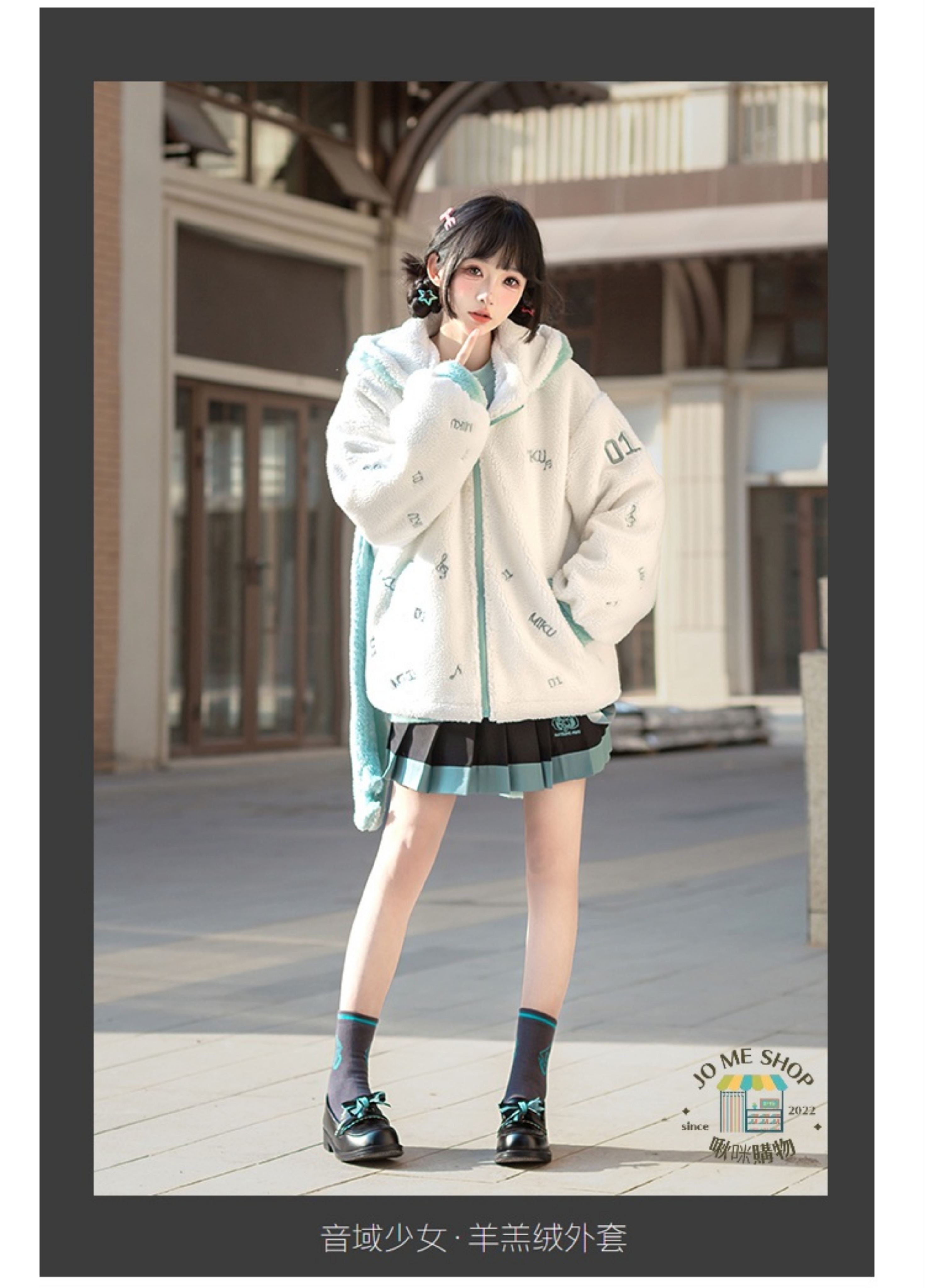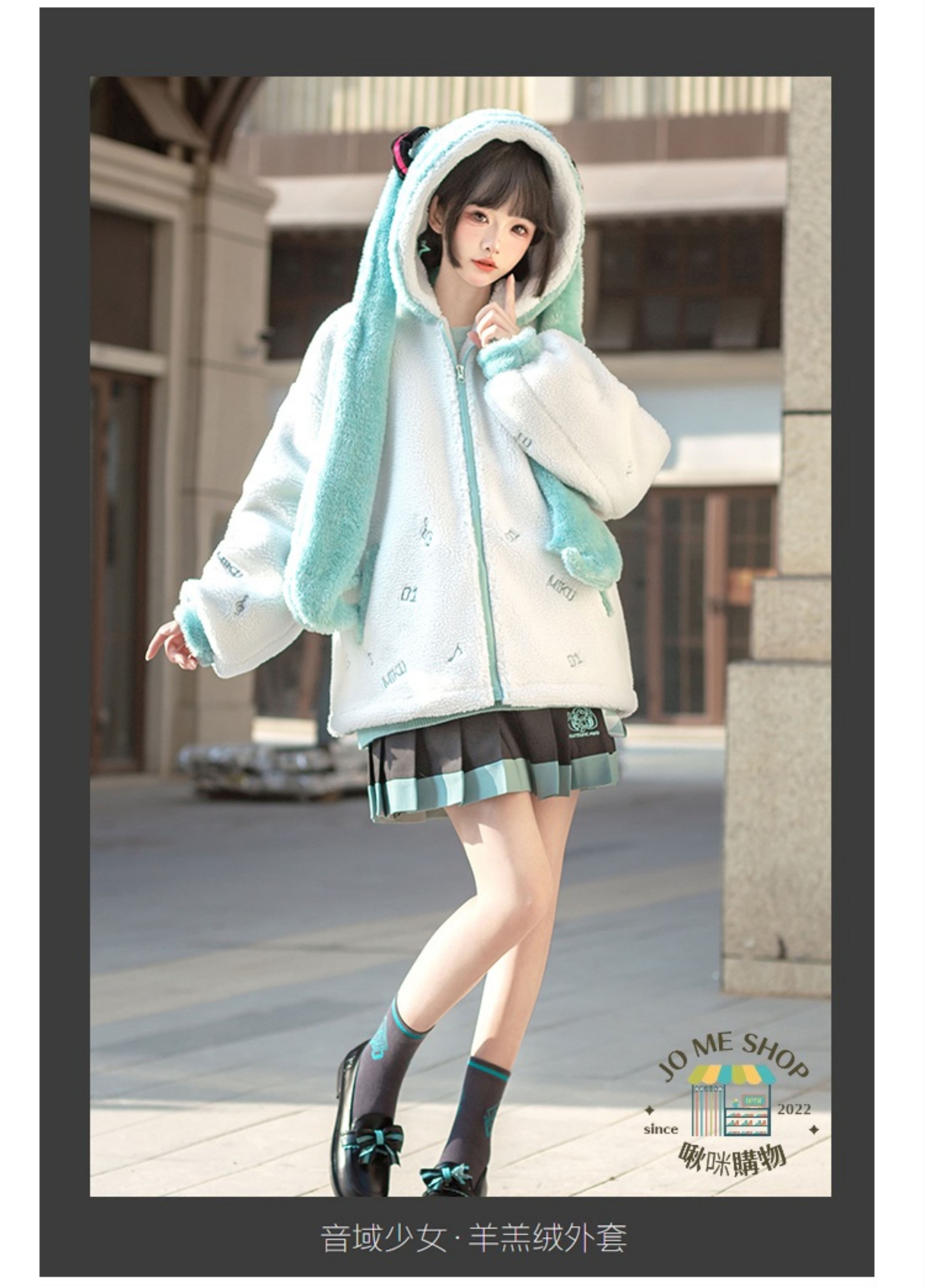 這款羊羔絨外套的連帽設計 整個還原初音的長耳造型
