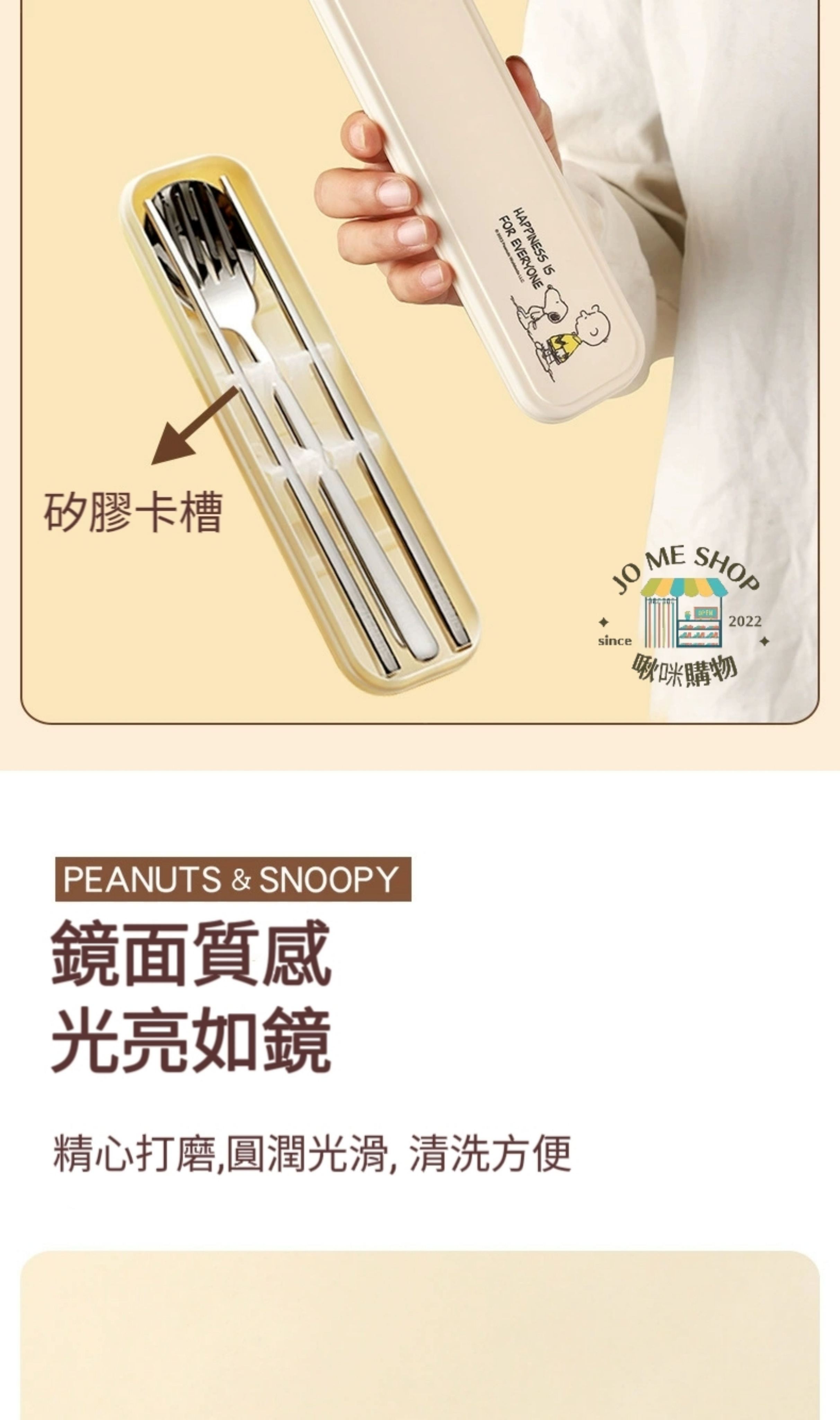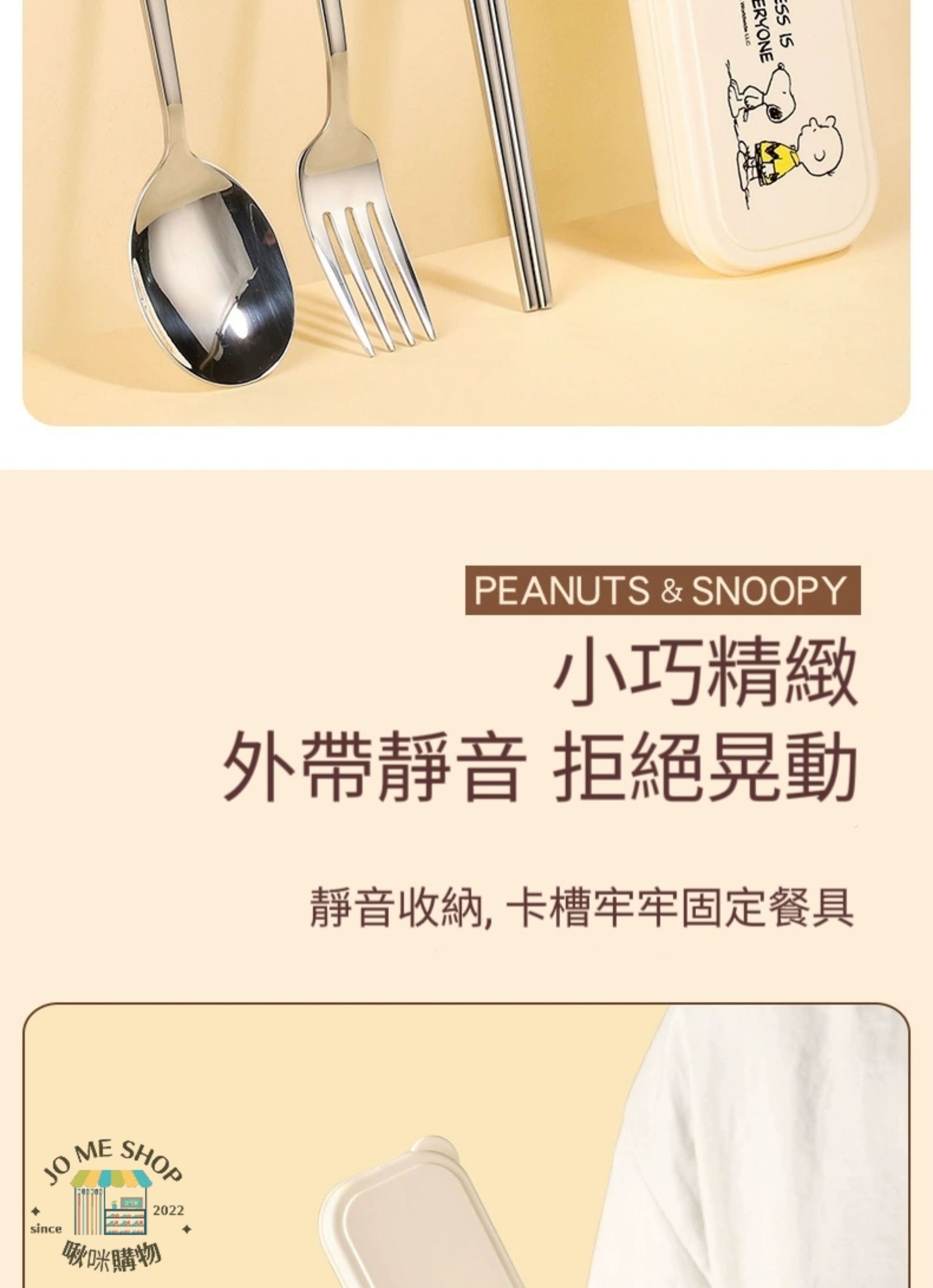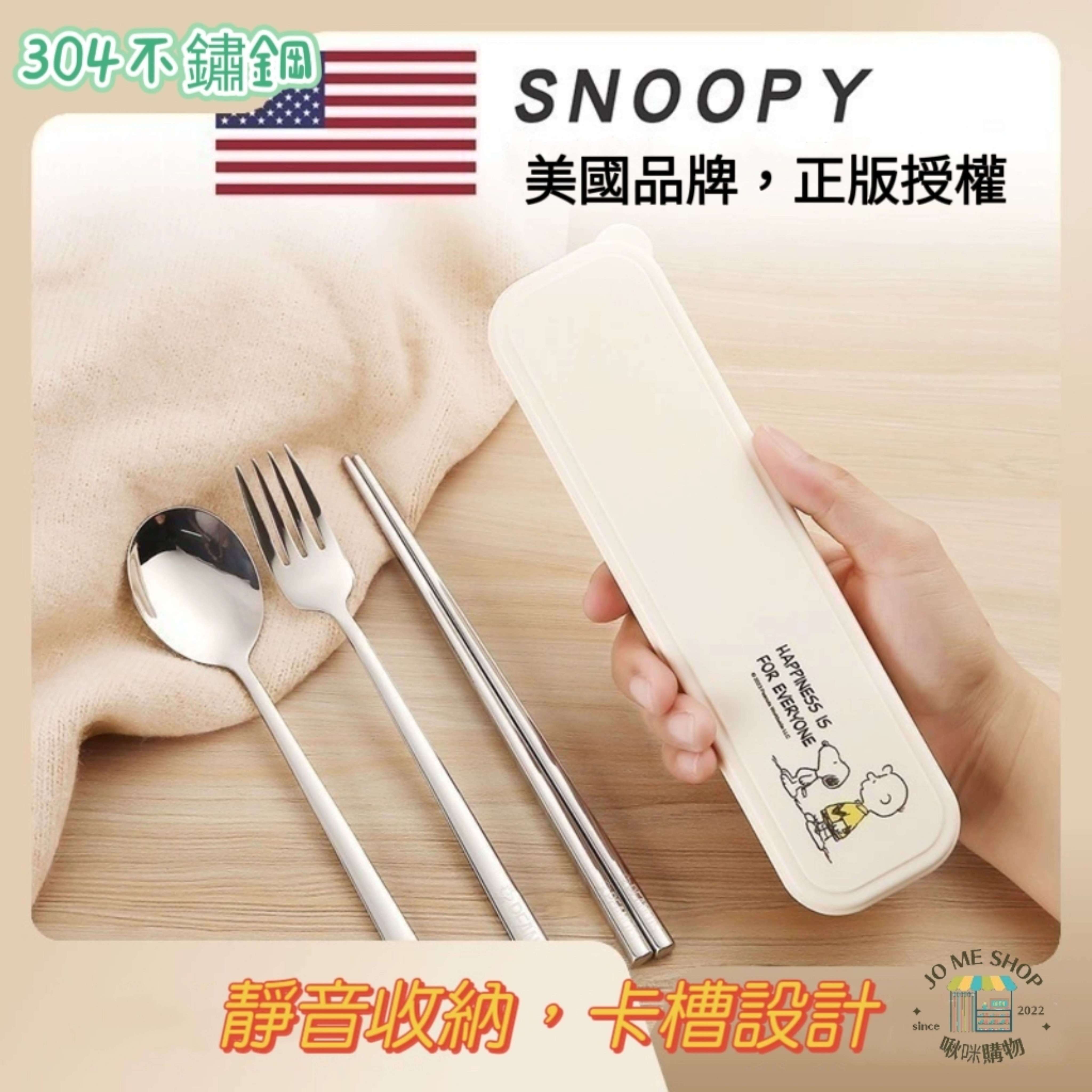 史努比餐具 304不鏽鋼 筷子 湯匙 叉子 學生餐具 套裝 四件式 隨身攜帶