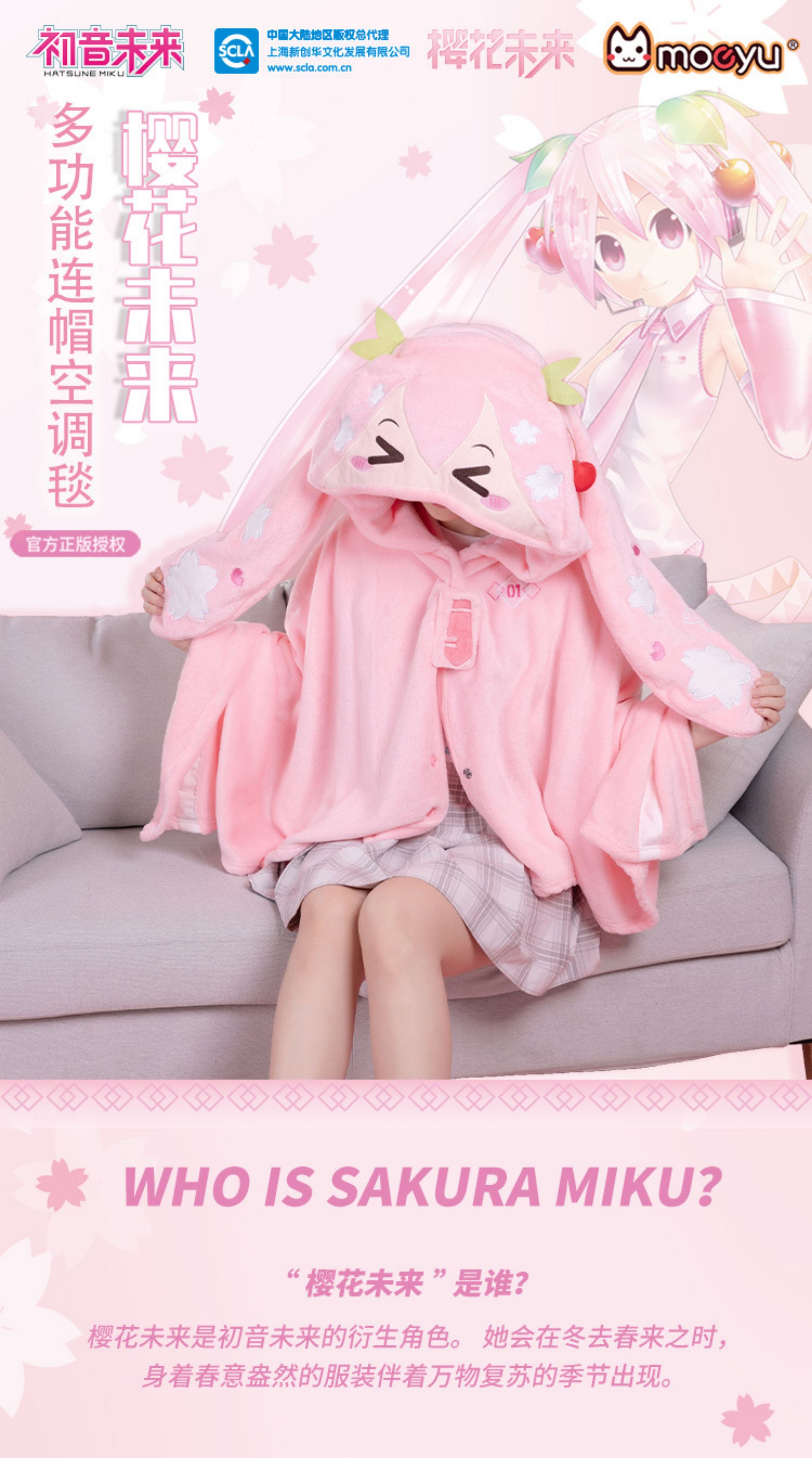 Moeyu 櫻花未來 瞇瞇眼系列 多功能 連帽 空調毯 抱枕保暖法萊絨披肩