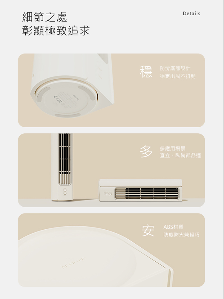 內容物:風扇主體 x 1 / Type-C充電線 x 1 / 說明書 x 1 / 穩固貼紙 x 1