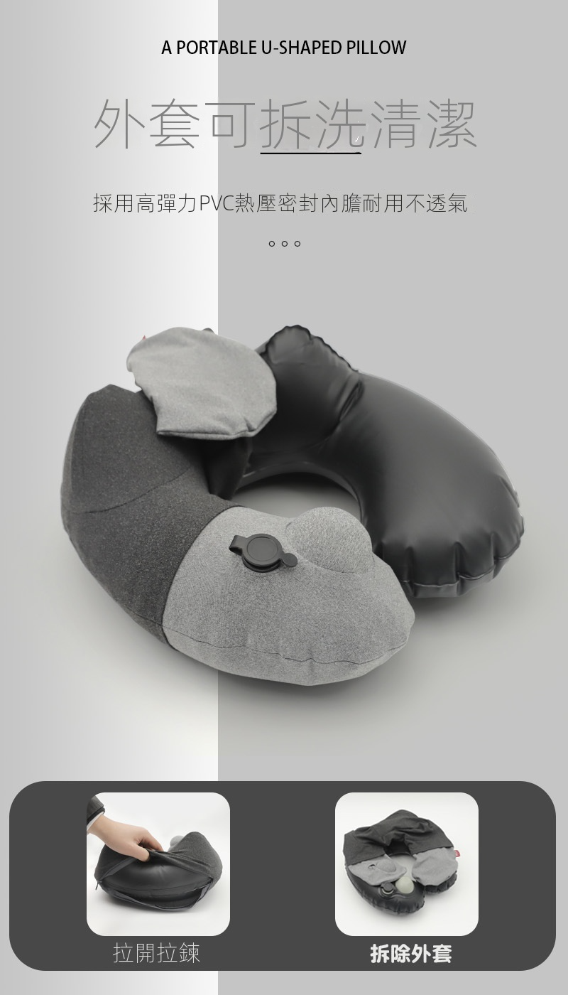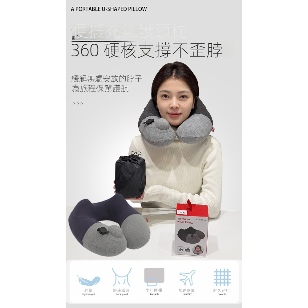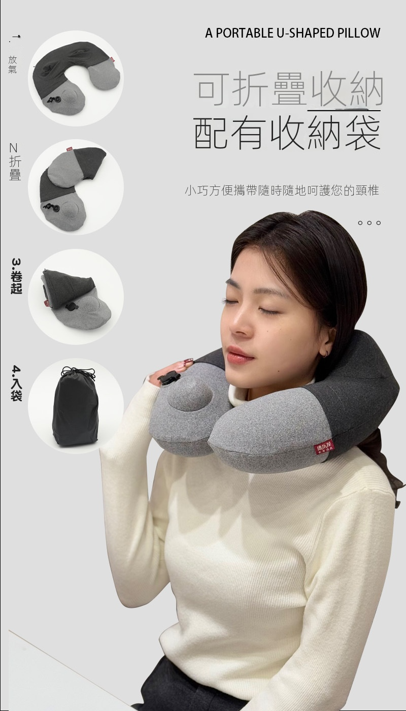 【免電手充氣】U型頸枕|一鍵放氣・絨布可拆洗・360°支撐頸部・便攜旅行枕|挑戰全網最棒價格