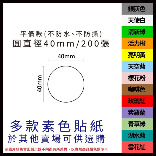 除了白色還有其它12色貼紙在其它賣場~