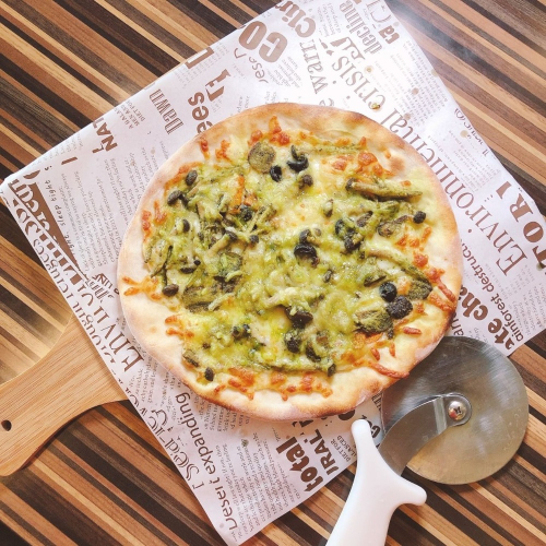 成分:成分:披薩粉,,Mozzarella起司,黑橄欖,蕃茄,菇類,青醬,艾曼塔起司,水,橄欖油,塩,酵母