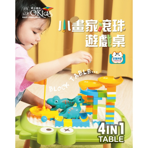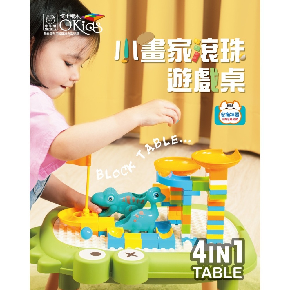 ●滾珠積木桌/塗鴉畫板/成長學習/整理收納-多功能4合1