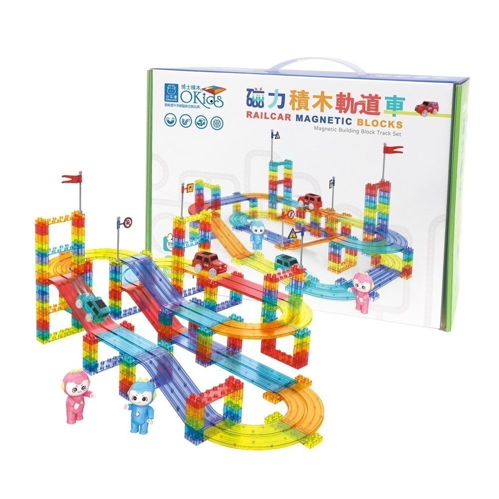 【小牛津】磁力積木軌道車-152pcs (積木+軌道+磁力片設計) ~可以玩賽車的磁力片!