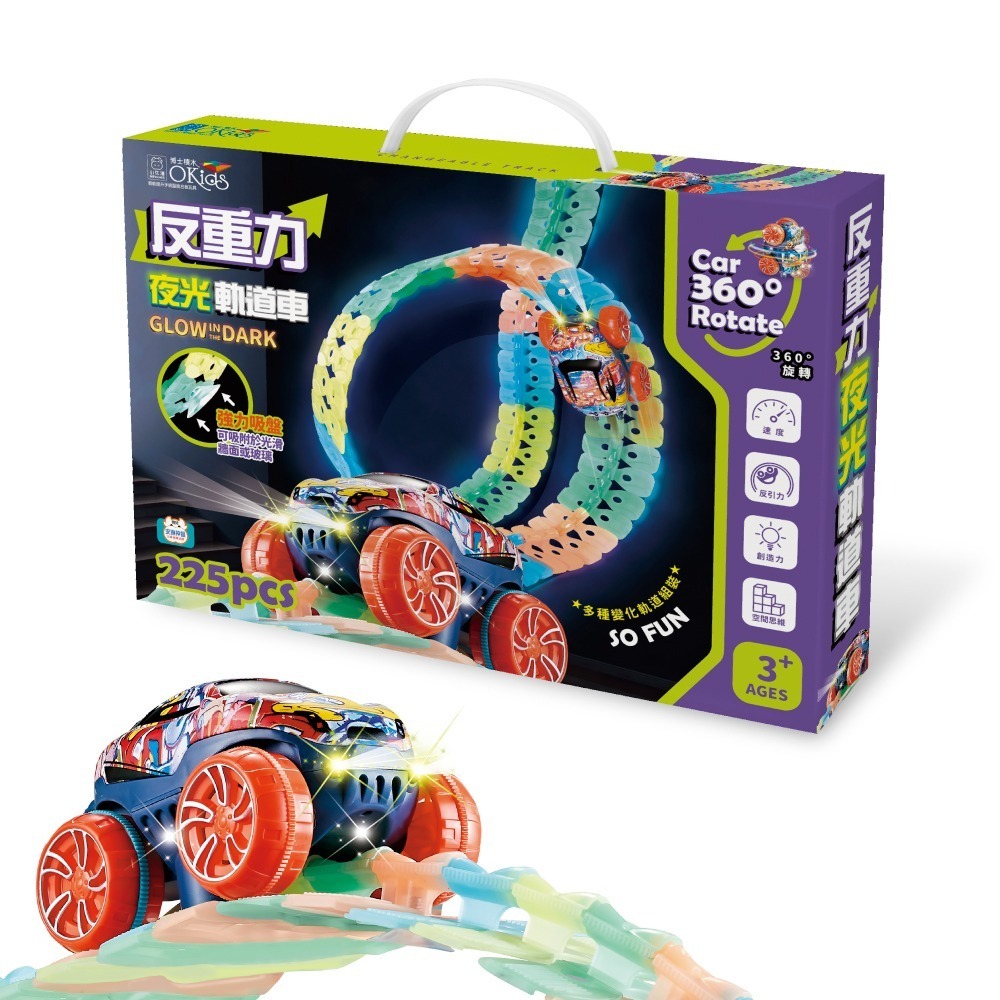 【小牛津&Okids博士積木】反重力夜光軌道車-225pcs(電動玩具車/DIY玩具/軌道玩具)
