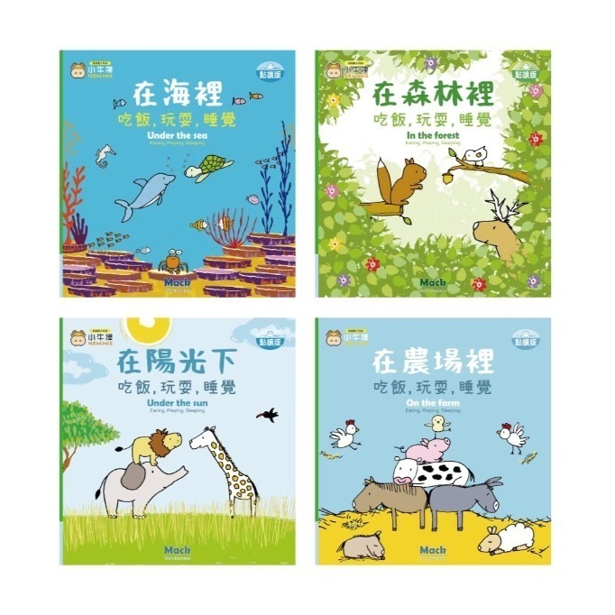 【小牛津】吃飯,玩耍,睡覺系列4入組(在海裡/在陽光下/在森林裡/在農場裡)~比利時Clavis授權
