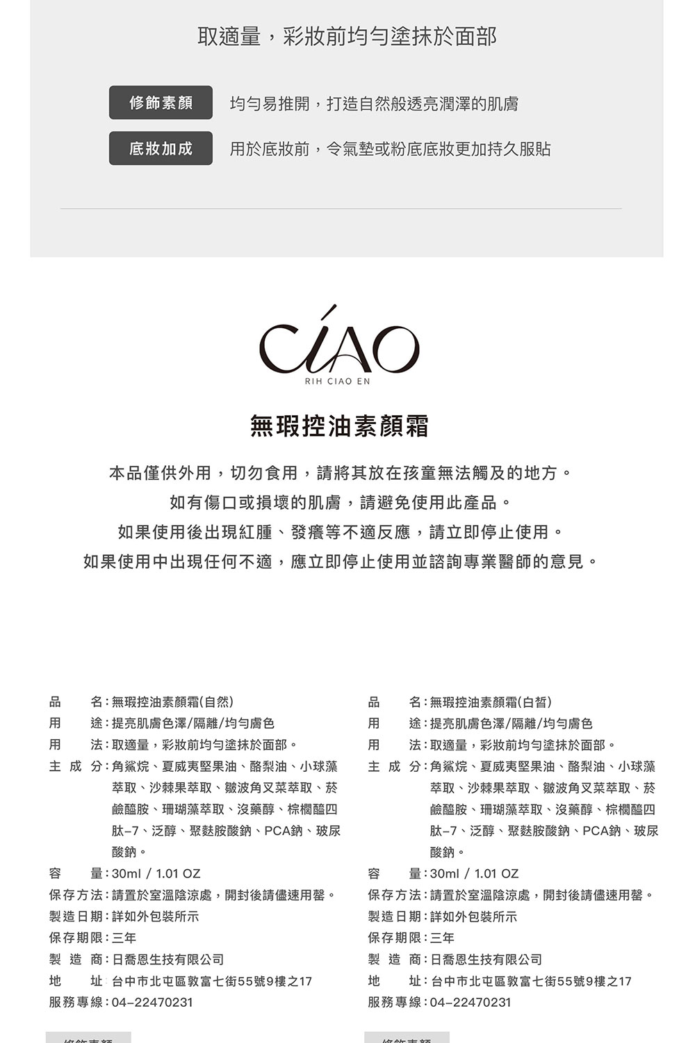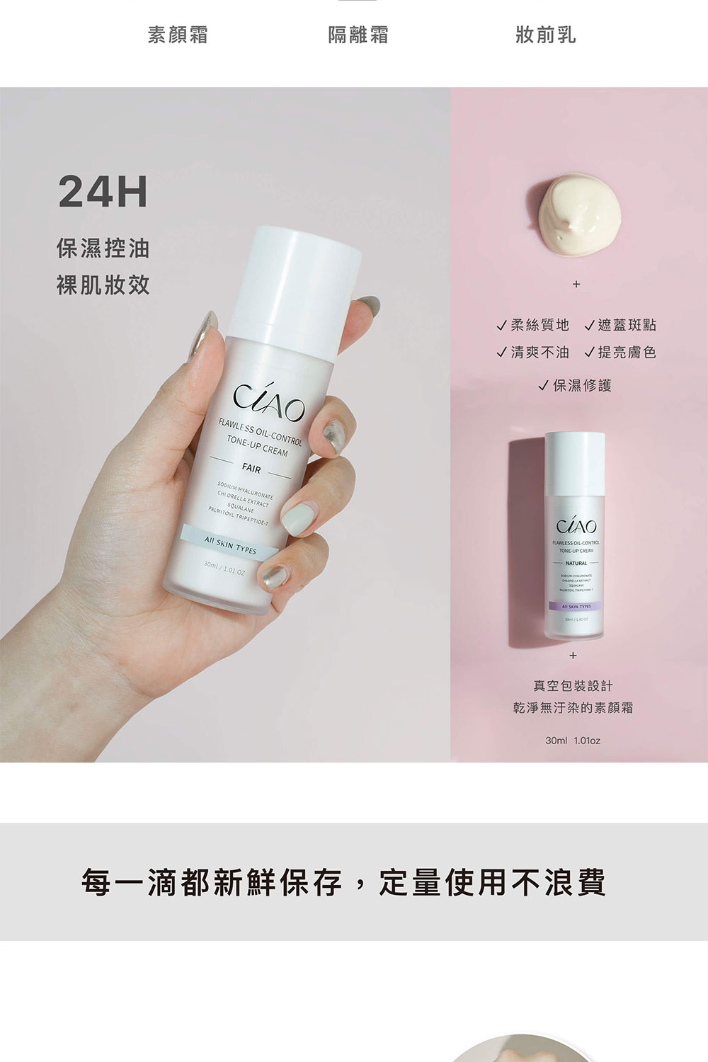 日喬恩|無瑕控油素顏霜(自然/白皙)CIAO (素顏神器 偽素顏 瞬間提亮 好氣色 提亮嫩白 控油 隔離霜 妝前乳 裸妝