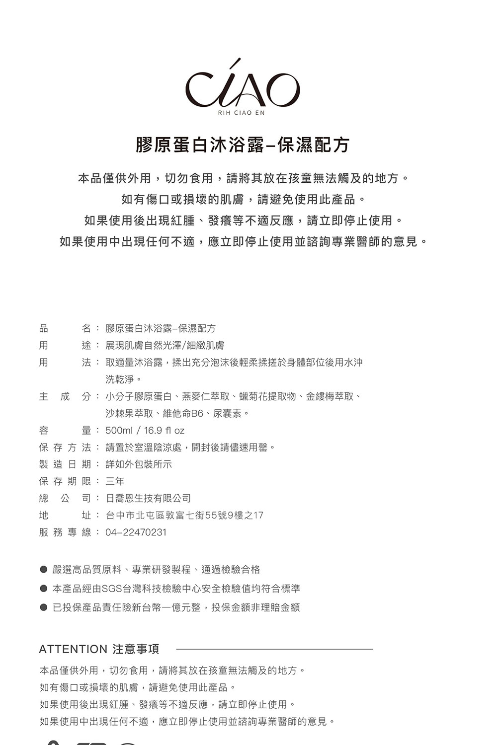 日喬恩|膠原蛋白沐浴露-保濕配方 (肌膚水潤 沐浴乳 洗澡 滋潤 滋養 膠原蛋白 角質更新)
