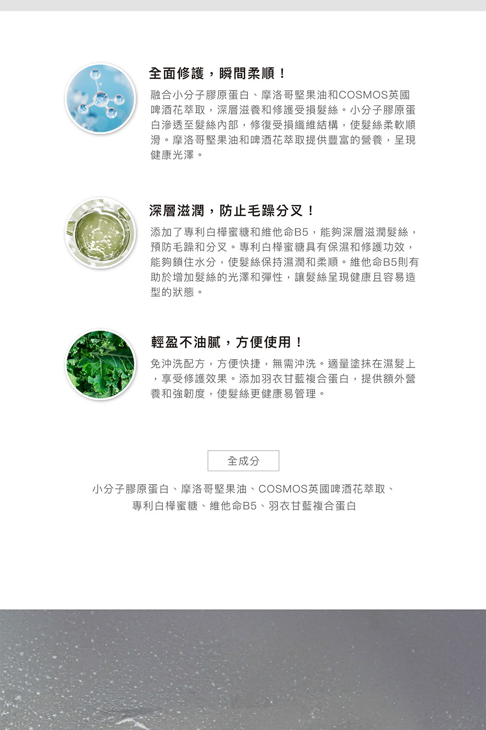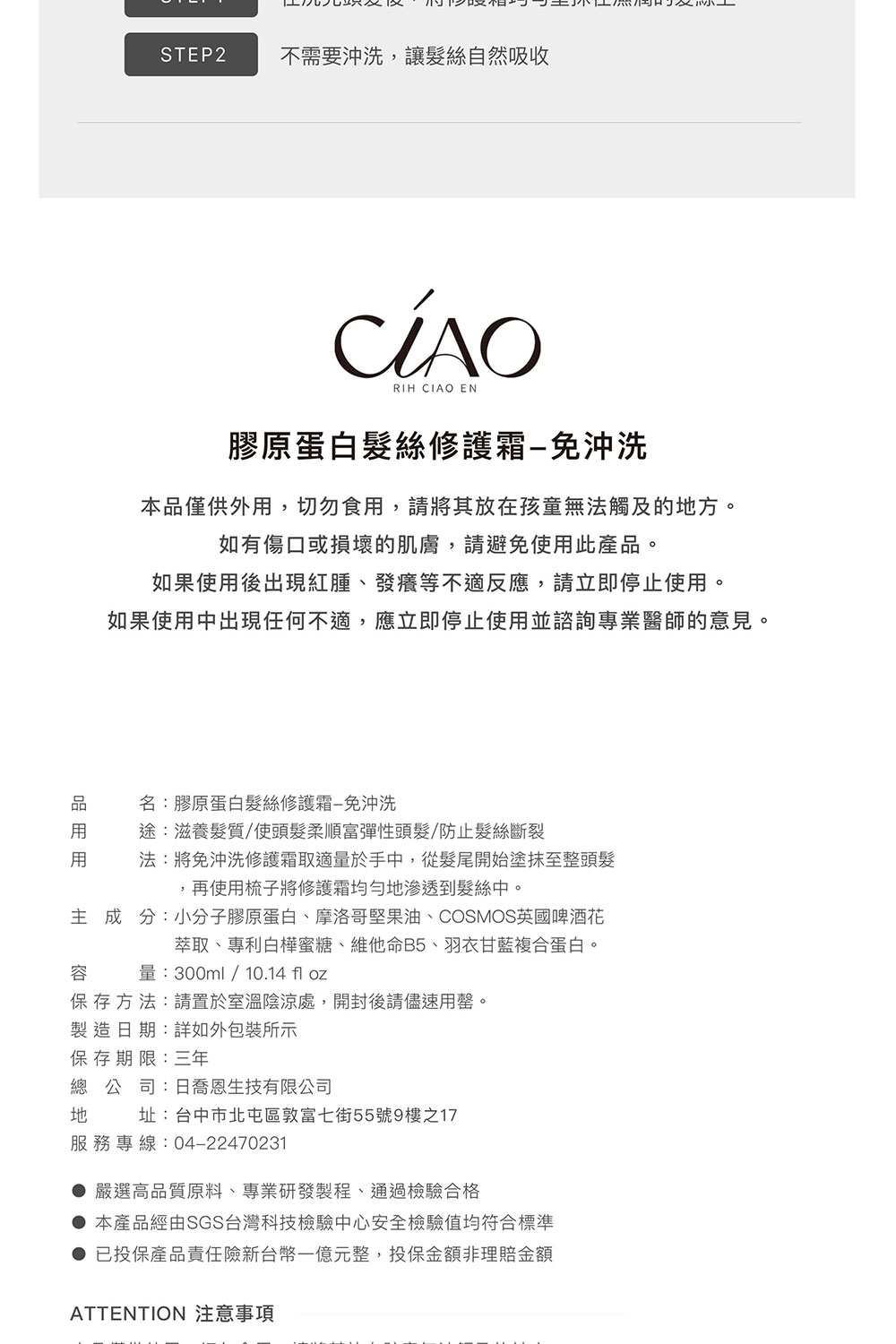 日喬恩|膠原蛋白髮絲修護霜-免沖洗 (柔順 髮品 CIAO 護髮乳 潤髮乳 防止分叉 增添光澤 天使光 髮質 護髮)
