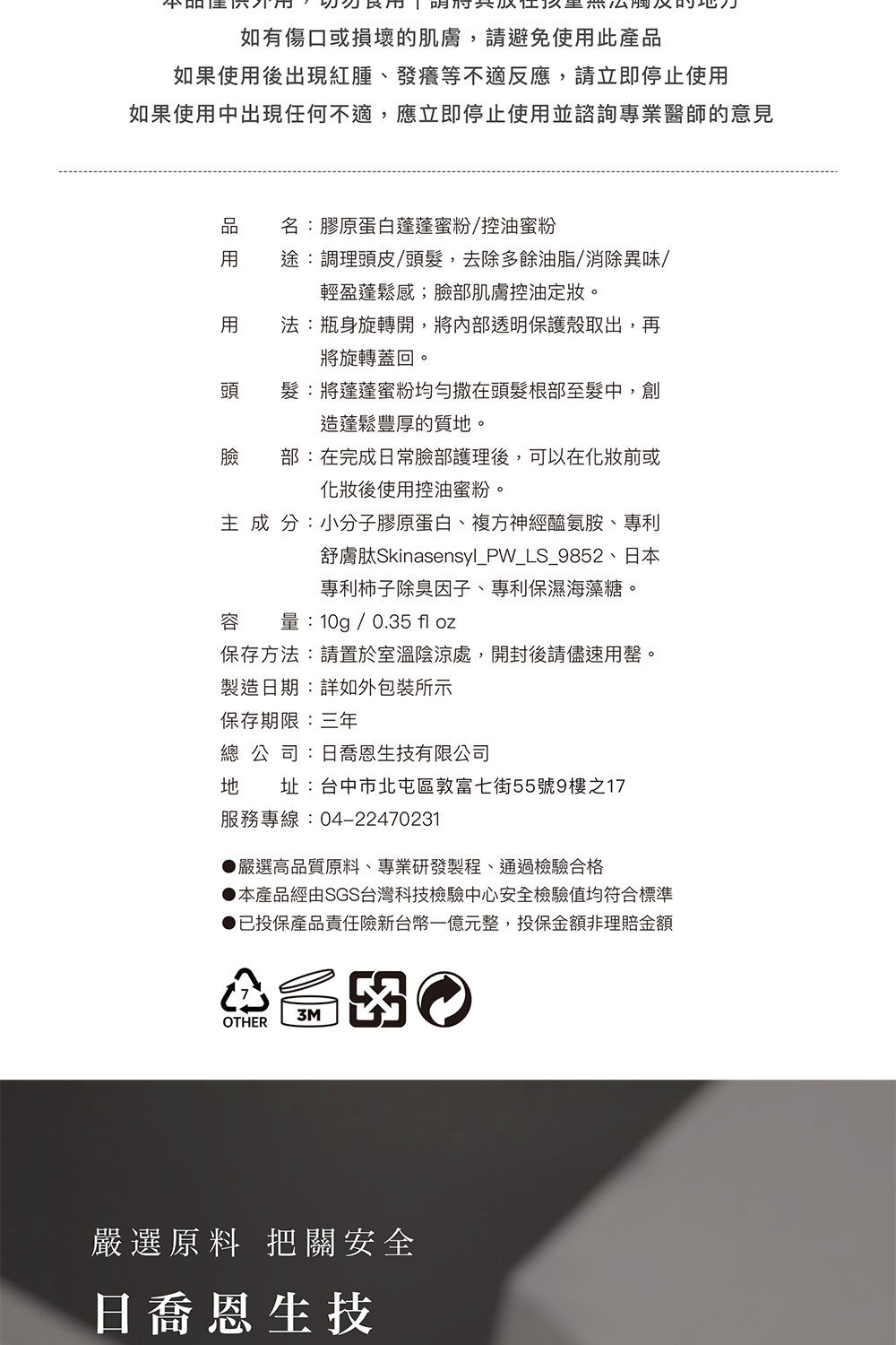 日喬恩|膠原蛋白蓬蓬蜜粉/控油蜜粉 (控油 夏天 油頭 乾洗髮 安全帽 蓬鬆 去油)