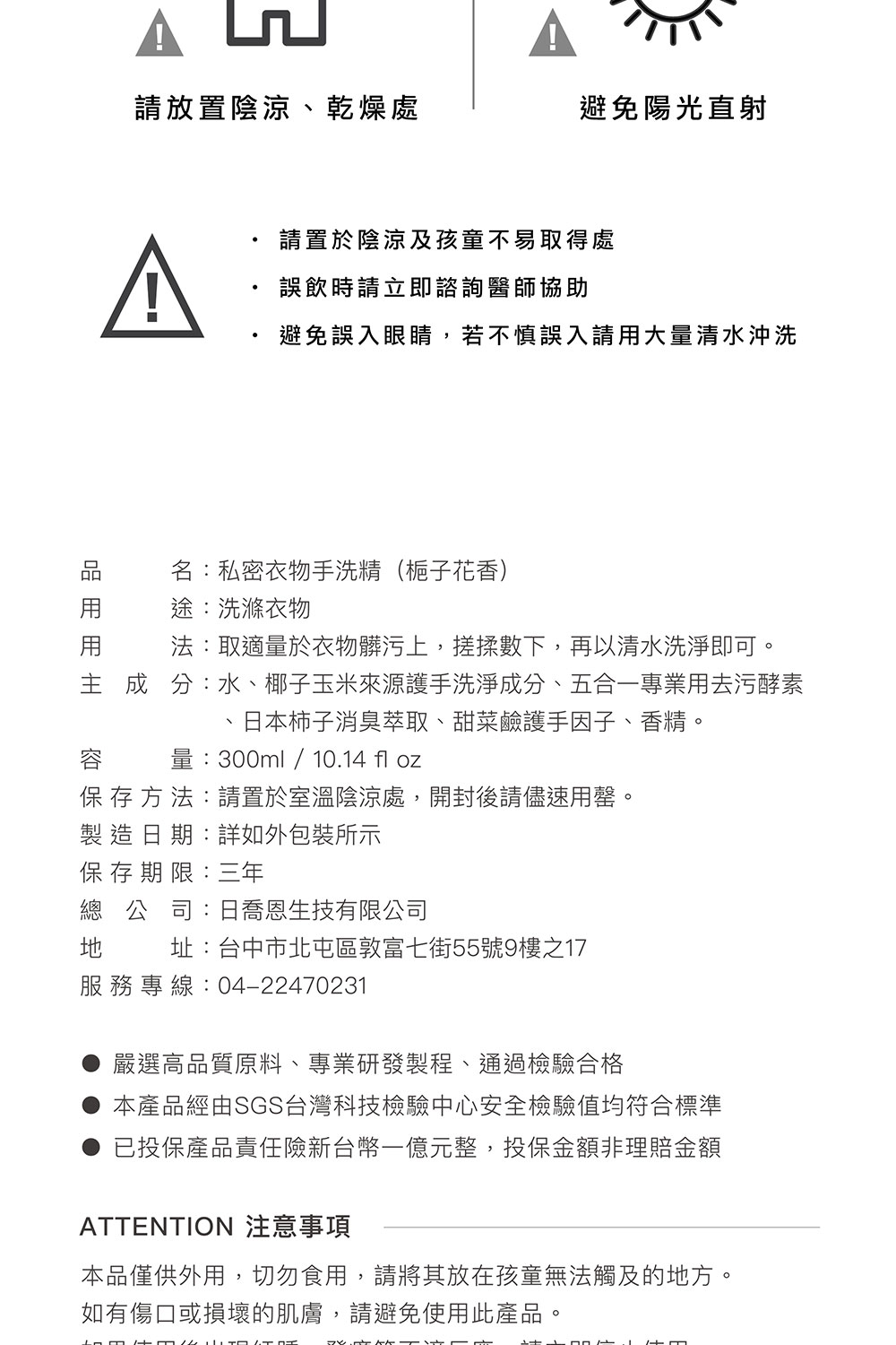 日喬恩|私密衣物手洗精(梔子花香) (私密專屬呵護 內衣褲清潔 手洗精 寶寶衣物 刷具清潔)