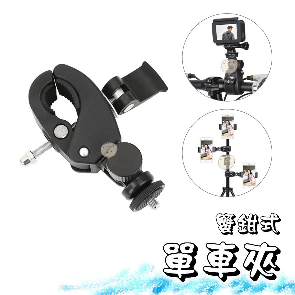 適用燈架、單車、桌面等,特別是條狀或者棍狀的物體...;通用型1/4螺絲,可外掛行車紀錄器、運動攝影機、DV、手電筒夾座、手機夾座等各式支架。