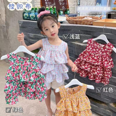 ▸小伊森◂現貨 碎花造型無袖上衣 女童 娃娃衫 無袖 造型短袖 上衣 童裝 短袖 夏季童裝 現貨童裝 百元童裝
