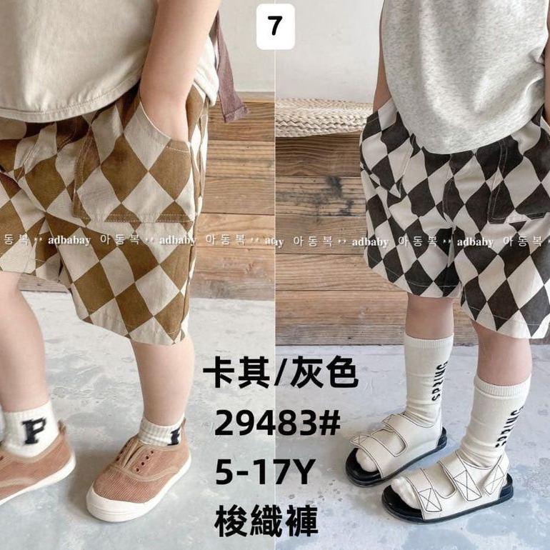 ▸小伊森◂現貨 日系菱格梭織短 女童 男童 兒童 短褲 造型 童裝 短袖 夏季童裝 現貨童裝 百元童裝