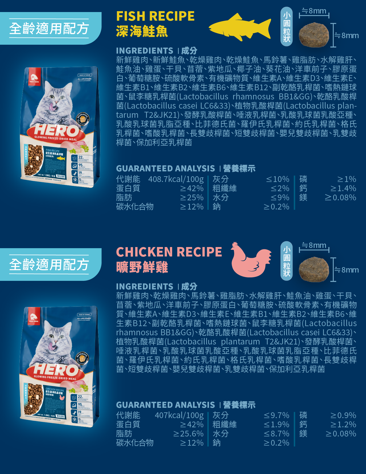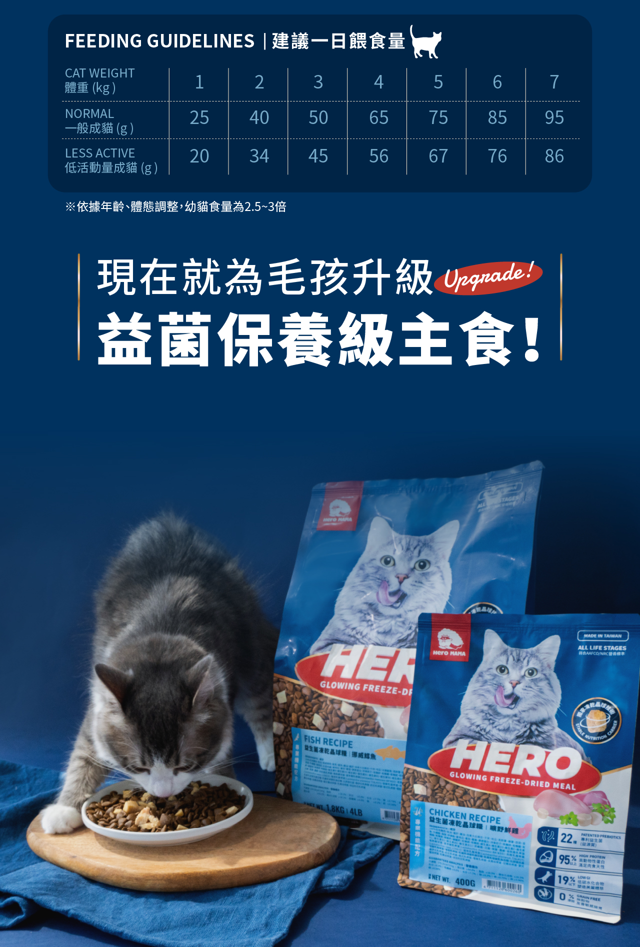 ✔️HeroMama益生菌凍乾晶球糧:這款獨特的產品結合了凍乾晶球和益生菌,是專為貓咪量身打造的餵食選擇。它含有多種益生菌,有助於維持貓咪的腸道健康,提升免疫系統,同時提供豐富的營養來源。