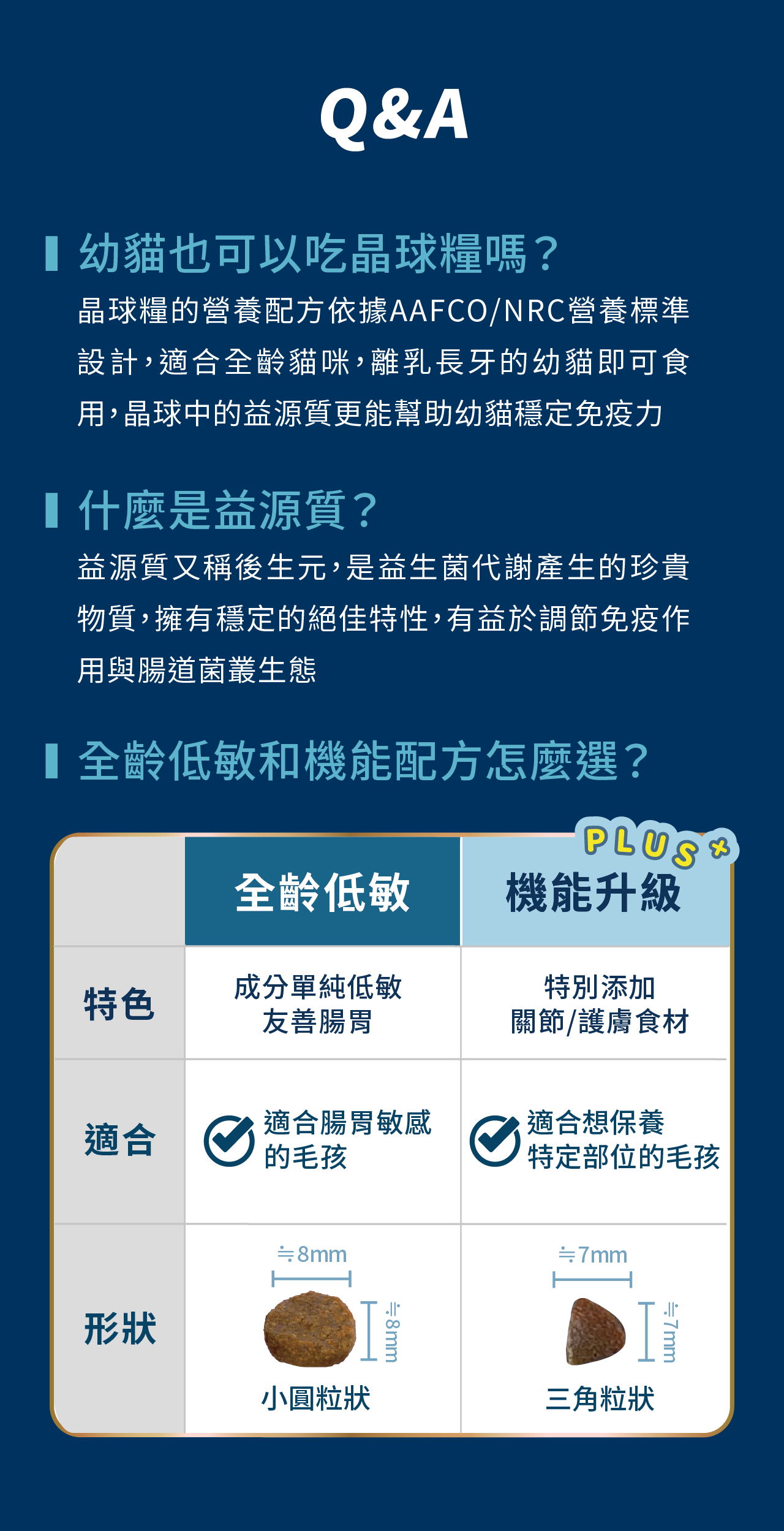 我們的產品特色主要包括益生菌凍乾晶球糧和全齡貓糧,為了讓您的貓咪擁有最佳的餵食體驗,我們的配方經過精心調製,以確保提供最優質的營養和口感。
