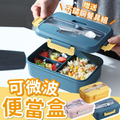 【可微波送餐具】便當盒 北歐三分隔便當盒 餐具便當盒 分隔餐盒 微波便當盒 保鮮盒 密封盒 野餐 露營【RS1141】