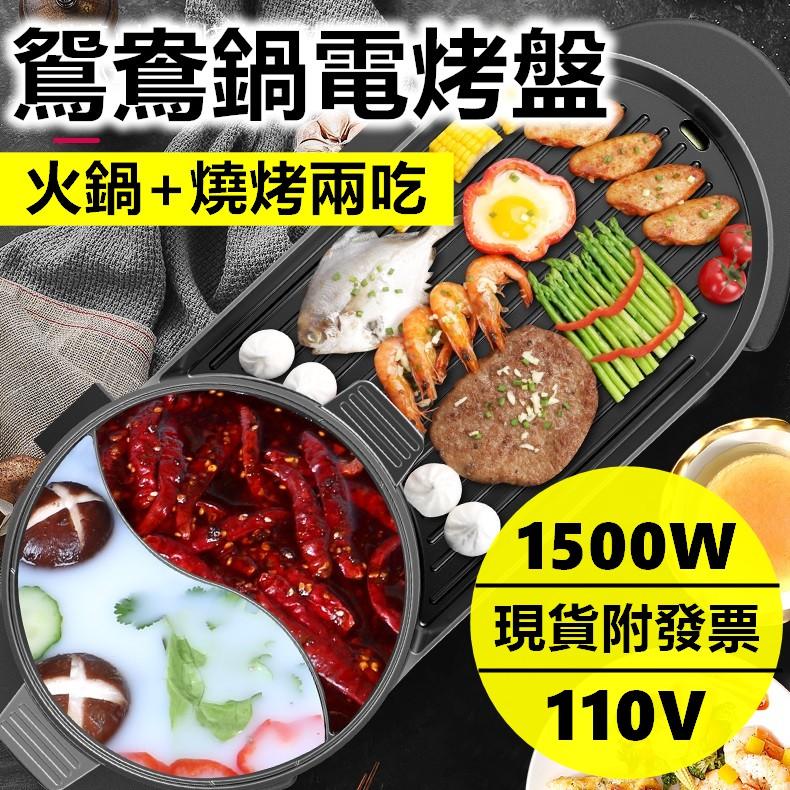 110V電烤盤 插電式 韓式電烤盤 鐵板燒 燒烤盤 不沾盤 烤魚烤肉鐵板燒 火鍋烤肉涮烤 鴛鴦鍋 鴛鴦【RS1144】