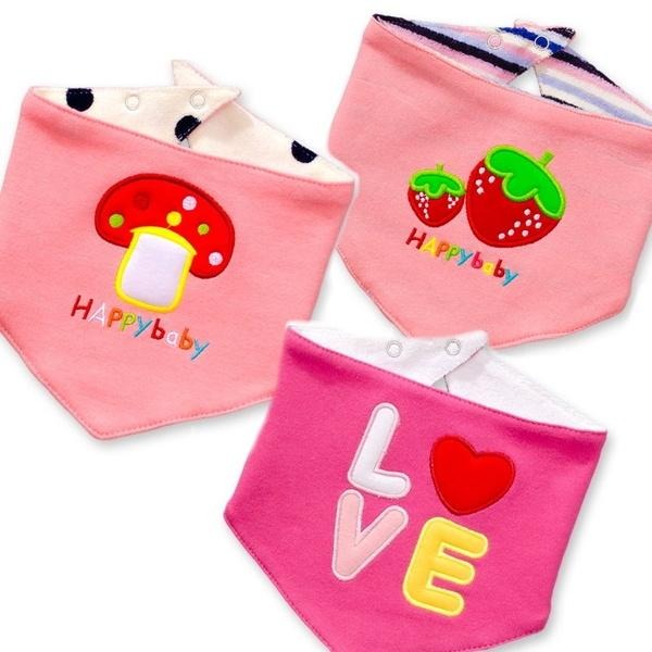 5折出清~台灣現貨 雙面純棉三角巾圍兜/口水巾3件組