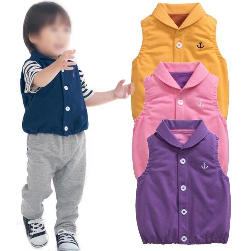 5折出清~台灣現貨 海軍標純棉毛圈有領小背心-86/90/95/100