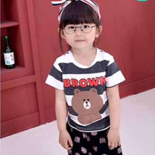 5折出清~台灣現貨 條紋咖啡熊短T,5號/7號/9號/11號/13號/15號/17號