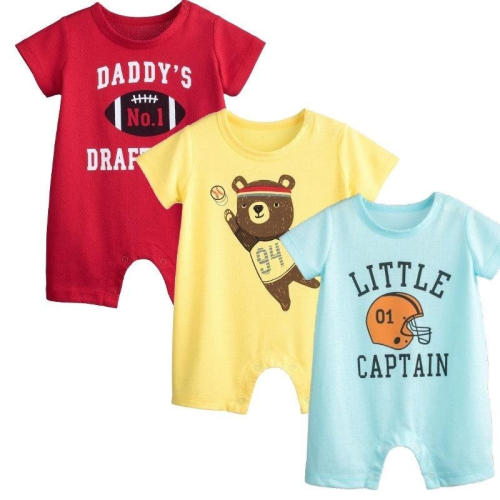 5折出清~台灣現貨 洞洞棉卡通球短袖連身衣,9m/12m/18m/24m
