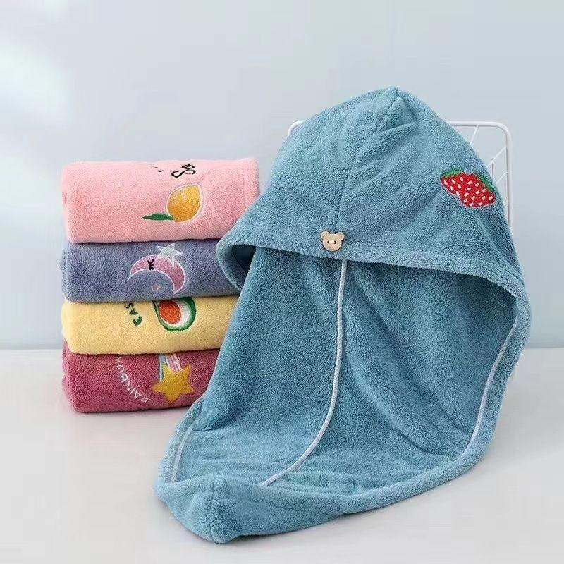 台灣現貨 刺繡小圖雙層珊瑚絨乾髮帽 擦頭巾,5色可選