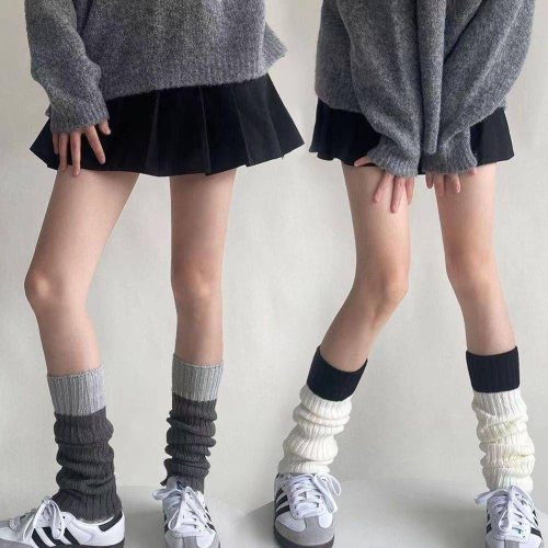 台灣現貨 針織撞色女襪套 鐵飾襪套 保暖襪套 針織襪套