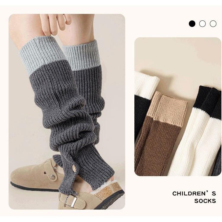 女童鈕扣拚色襪套 女童堆堆襪套 冬季針織襪套 咖啡色系襪套 保暖襪套
