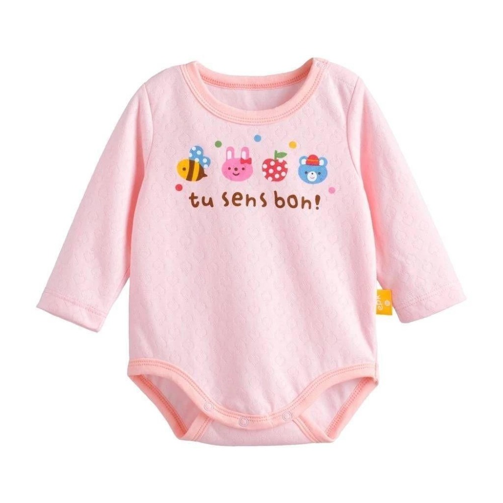 5折出清~橘粉動物秋冬空氣棉肩扣長袖包屁衣 肩扣包屁衣 空氣棉包屁衣