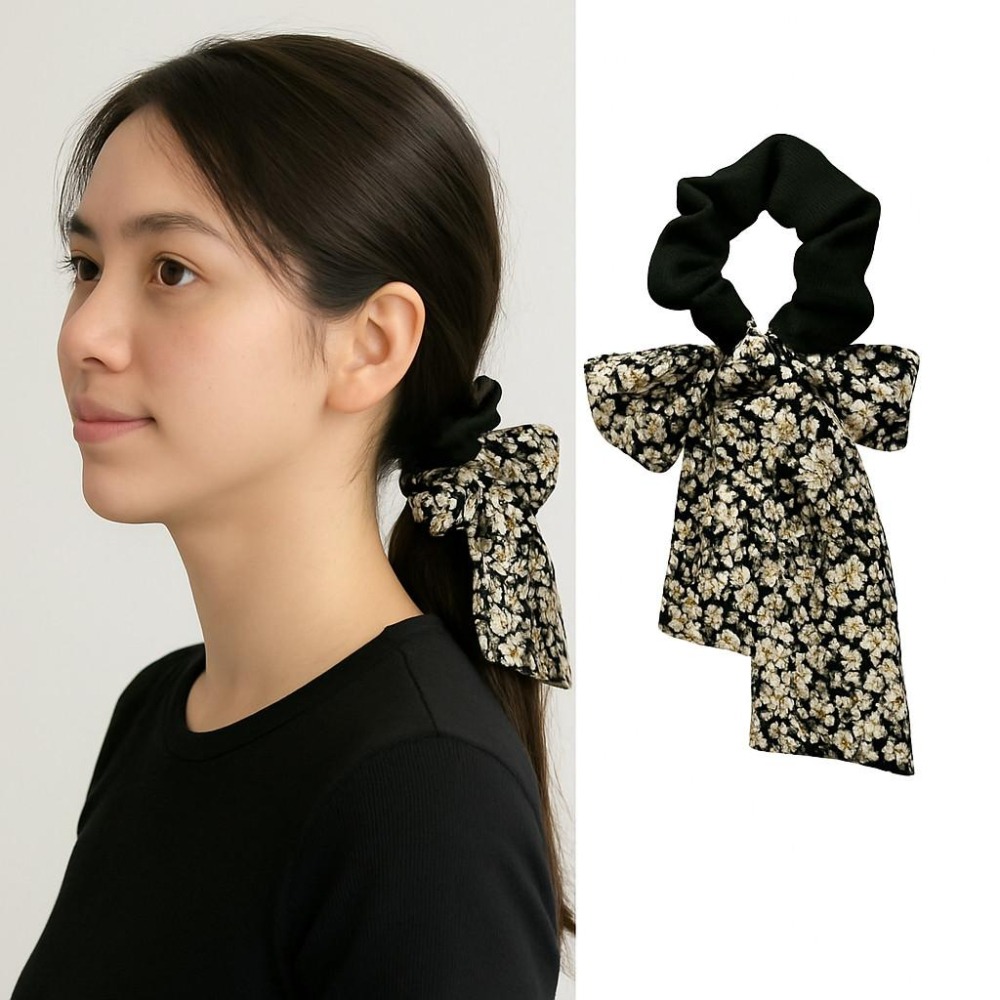 這款黑色碎花大腸髮圈是一款優雅又實用的髮飾,為您的髮型增添一絲浪漫與甜美。髮圈上裝飾著精緻的碎花圖案,讓整體設計不會顯得單調。無論您是長髮或是短髮,這款髮圈都能完美搭配,為您的日常造型增加層次感。 此款髮圈還帶有一個可愛的蝴蝶結設計,為整體更添雅緻與時尚感。它不僅結構緊密且有彈性,能夠固定各種髮型,讓您一整天的髮型都能保持完美無瑕。無論是與正式服裝搭配,還是休閒穿著,都能持續展現 chic 的氛圍。