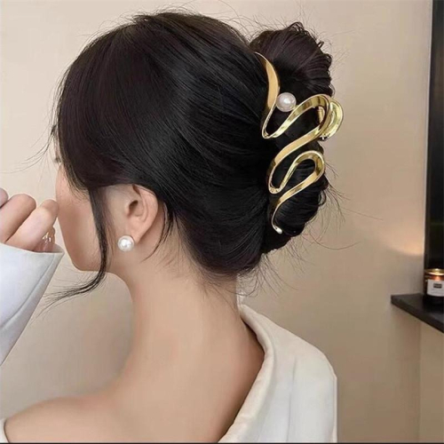 金屬波浪珍珠鯊魚夾 設計款盤髮夾 波浪髮夾 髮量多大嘴夾