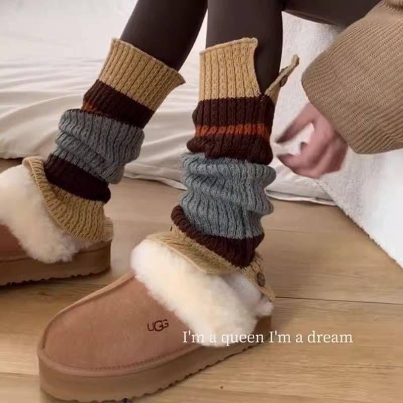 台灣現貨 秋冬都在穿的拚色襪套 顯直腿襪套 保暖襪套 堆堆襪套