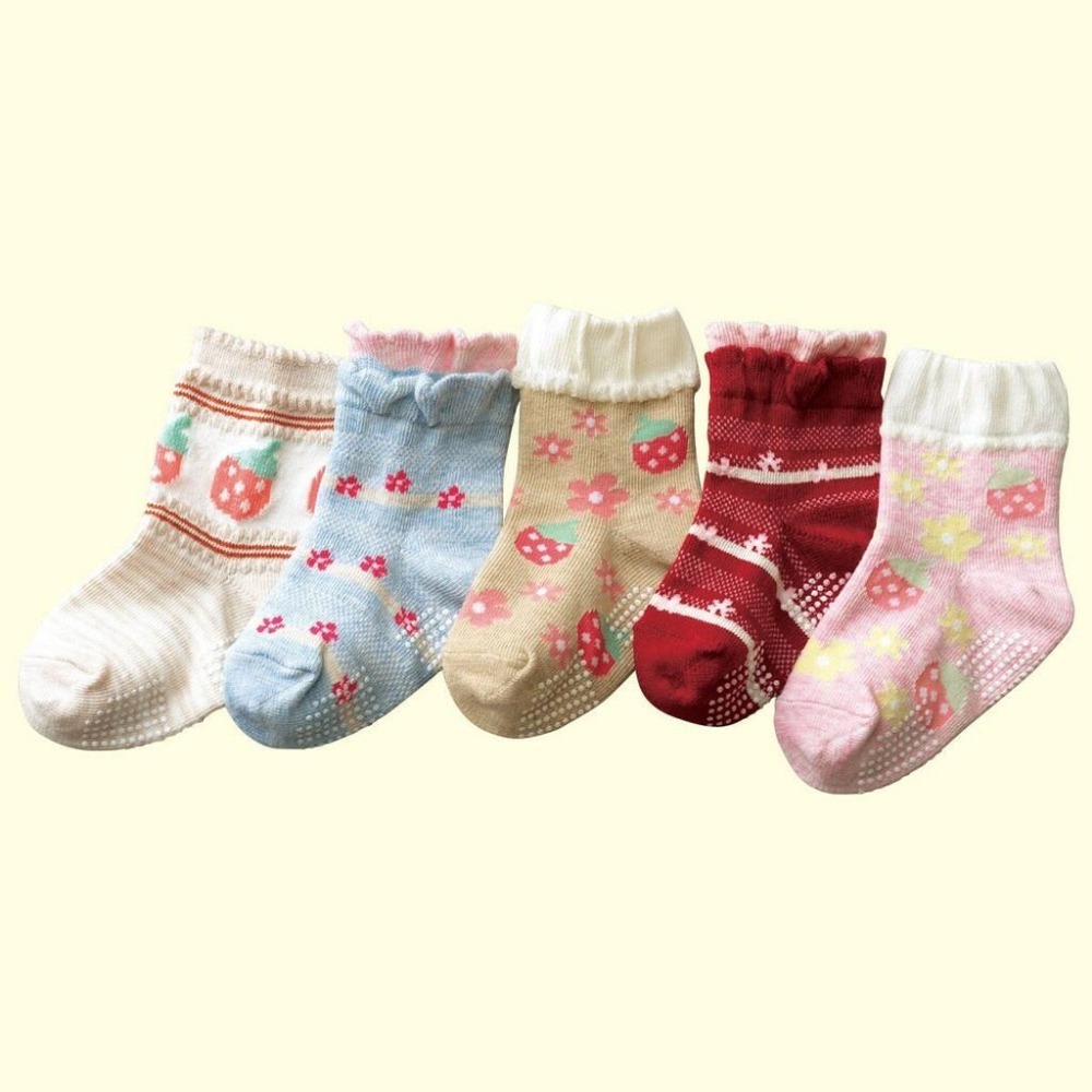 5折出清~台灣現貨 J&S童裝 棉質 女款草莓小花防滑襪