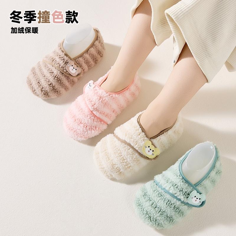 秋冬撞色地板鞋 室內鞋 防滑室內鞋 毛絨家居鞋 WA043