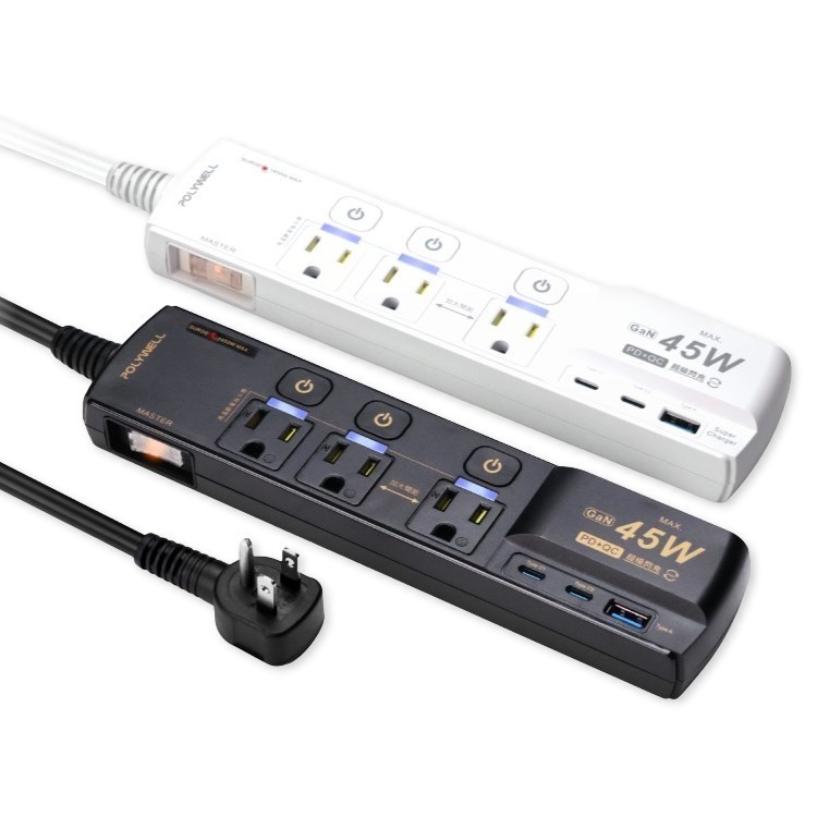 .品名:按壓式4開3插3P氮化鎵PD45W超閃充USB延長線
