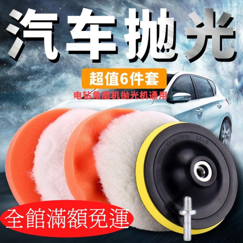 台灣現貨 打蠟棉組合 汽車美容 打蠟棉 6吋 5吋 電鑽砂輪機專用連桿 汽車打蠟六件套組 6吋 不打滑連接桿 拋光海綿