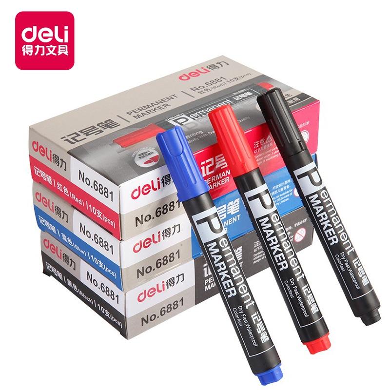 文具 得力6881記號筆 三色單頭油性筆 麥克筆 油性大頭筆 辦公用品