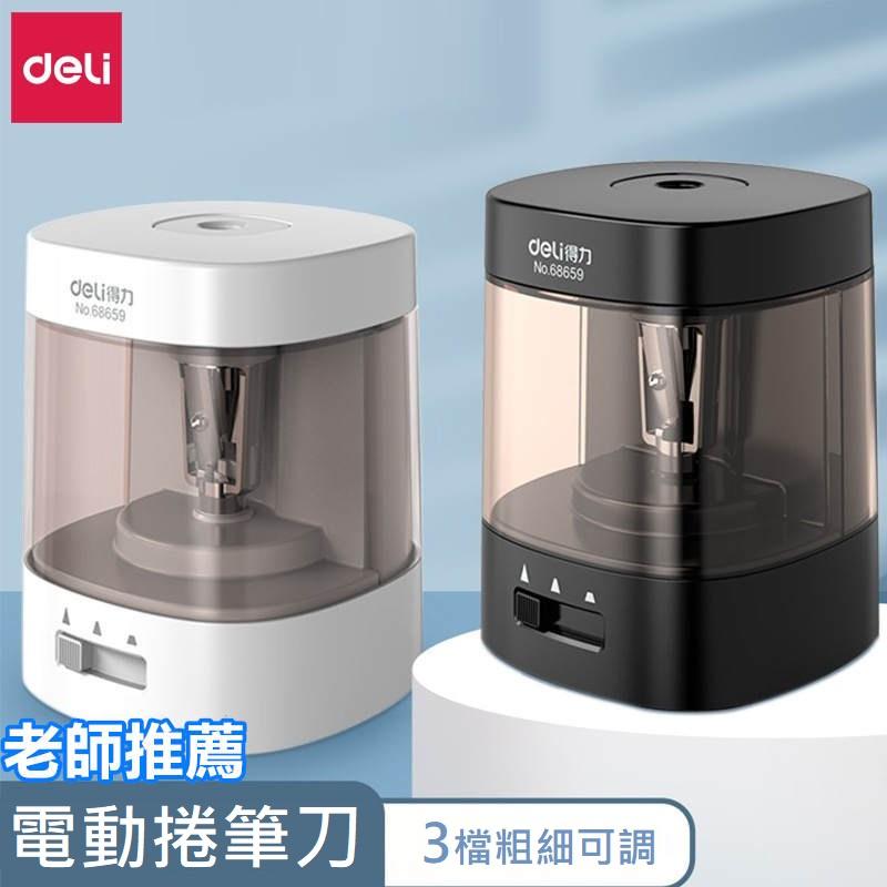 文具 電動削鉛筆機 得力68659電動捲筆刀 塑料自動削鉛筆機 學生文具 可調節粗細削筆器