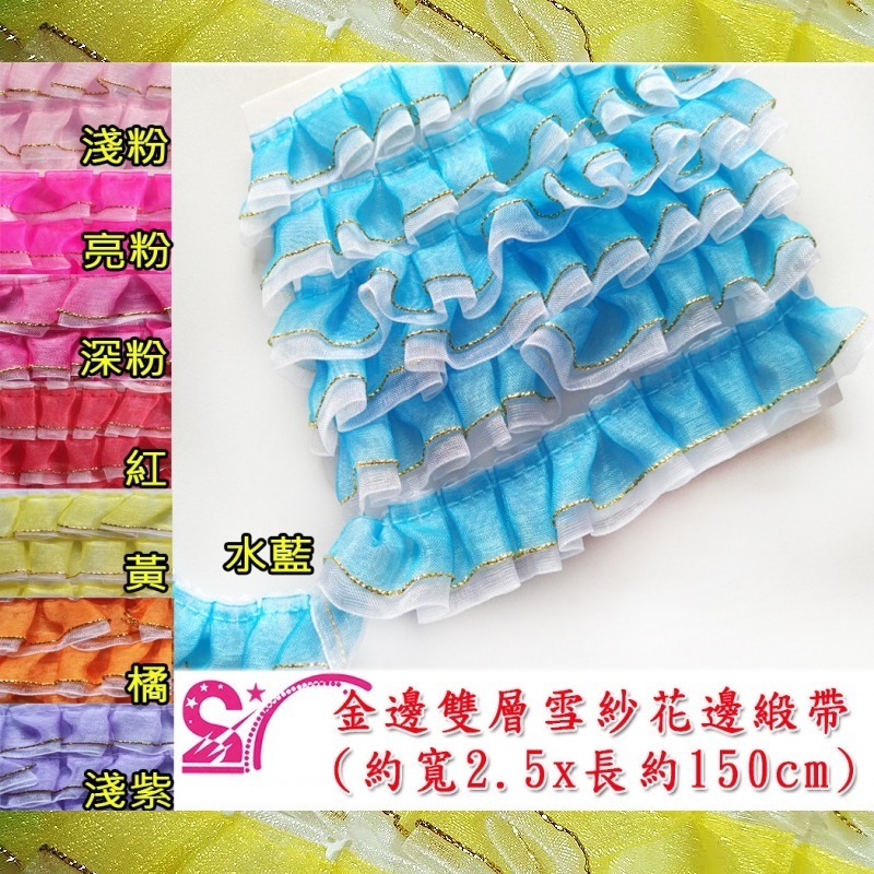 ✅ 24813 金邊雙層雪紗花邊緞帶(約寬2.5x長150cm)