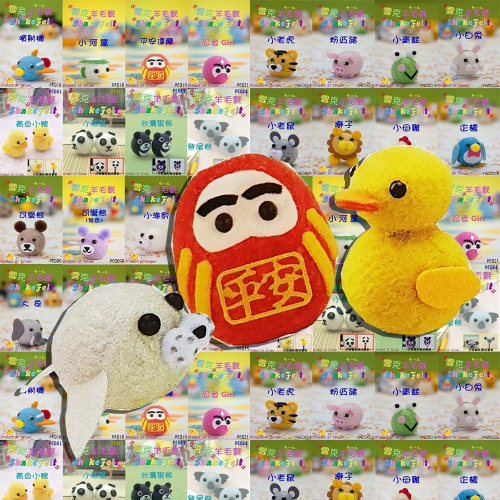 西西手工藝材料 30016 雪克羊毛氈(成品約4~5cm) 免用工具 平安達摩老虎大象噗噗車粉紅豬台灣黑熊青蛙 滿額免運