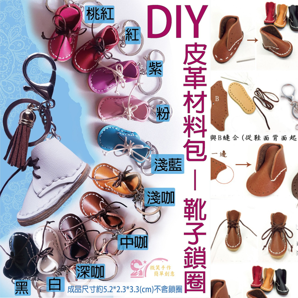 西西手工藝材料 24332 DIY皮革材料包-靴子鎖圈 有洞手縫 鎖圈掛飾 皮革材料包 合成皮材料包 簡單手縫 滿額免運