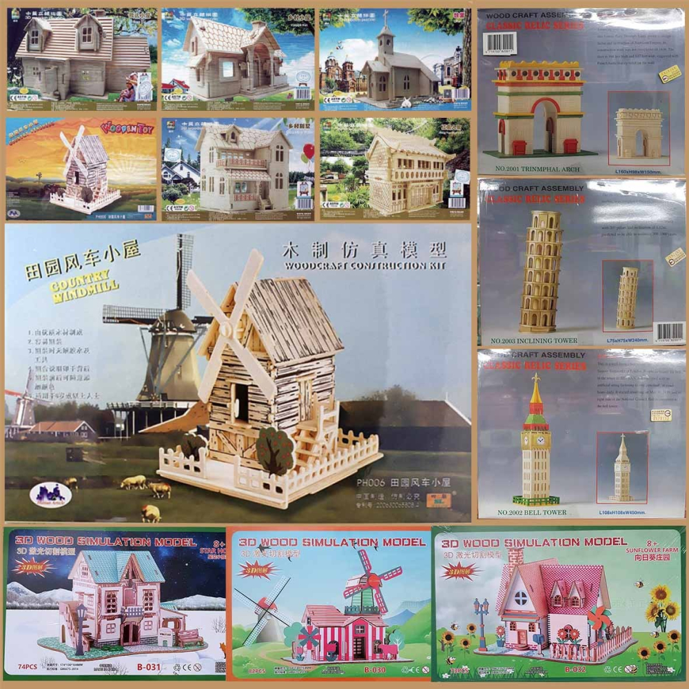西西手工藝材料 30110 木質模型(多款) 房屋模型別墅 建築模型鐵塔 袖珍屋配件 木製模型 組合式立體拼圖 滿額免運