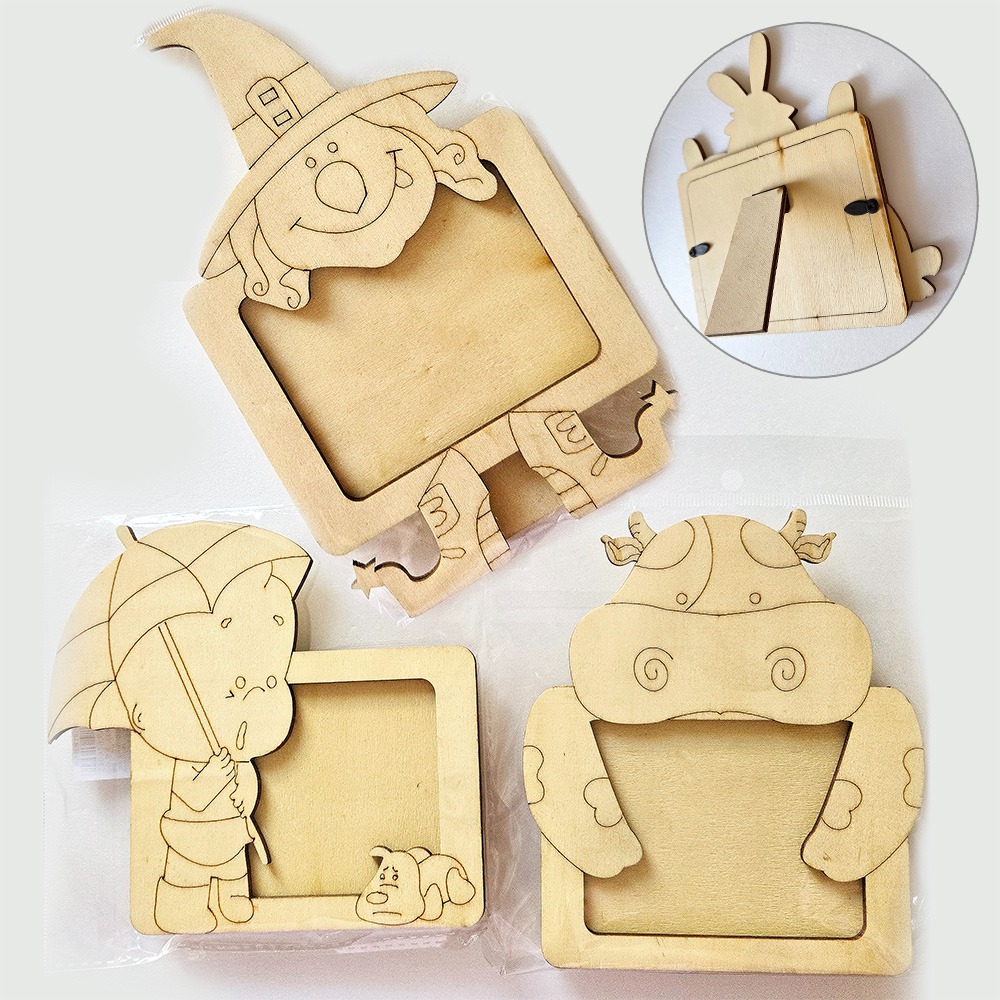 西西手工藝材料 61694 帶支架DIY彩繪相框(1入)款式隨機 空白塗鴉框彩繪原木製童玩兒童教具 美勞作材料 滿額免運