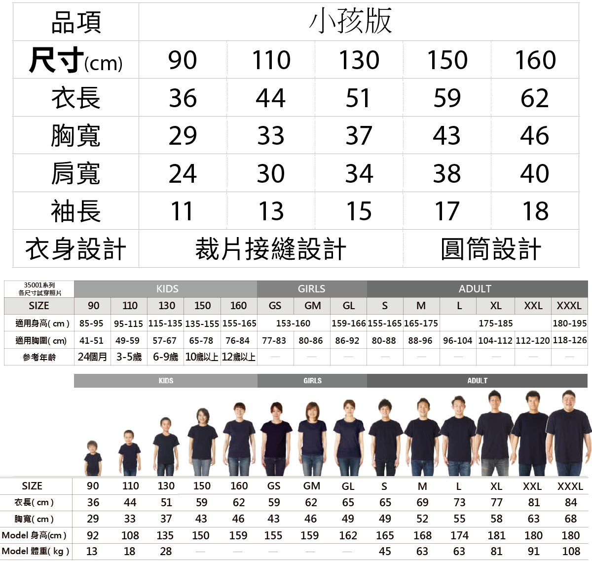 ★尺寸男版S~XL、女版GS~GL、兒童版90CM~160CM直接點選需要的顏色,並在留言給賣家備註尺寸★