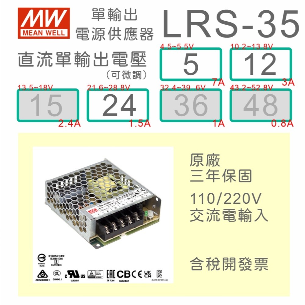 【保固附發票】MW明緯 AC-DC 35W LRS-35-5V 12V 24 24V 變壓器 LED燈條 驅動器 電源