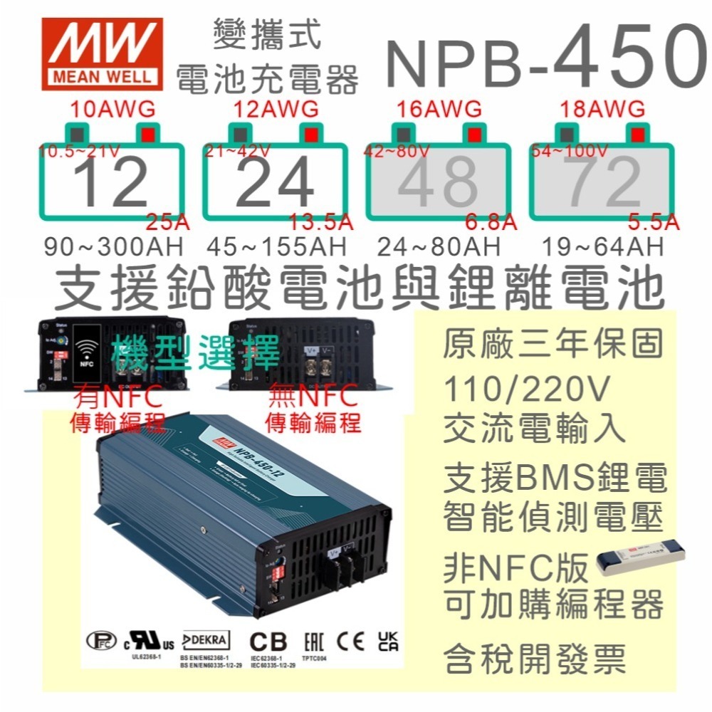 明緯秉持環境友善永續發展,並讓使用者能一機多用資源不浪費的理念,新推出兩款市面上罕見的450W與750W超寬壓高可靠通用型智能充電器~NPB-450/750系列,擁有智能、寬壓、一機多用、功能彈性、安全耐用五大特色,運用全新數位芯片設計並具備智能識別電池電壓功能,會依據所搭配的電池電壓自動調節 (使用此模式時限用鋰電池並需搭配BMS)。本次規劃的12V(10.5~21V)、24V(21~42V)、48V(42~80V)、72V(54~100V)四個機型皆具備2倍超寬充電電壓,能以一抵多,一台充電器適用不同電池電壓,使用者不需再為了不同電池電壓購置多台充電器,不僅替使用者節省了成本,也能為下一代建構更完美的環境盡一份心力。